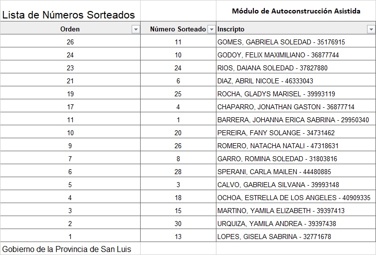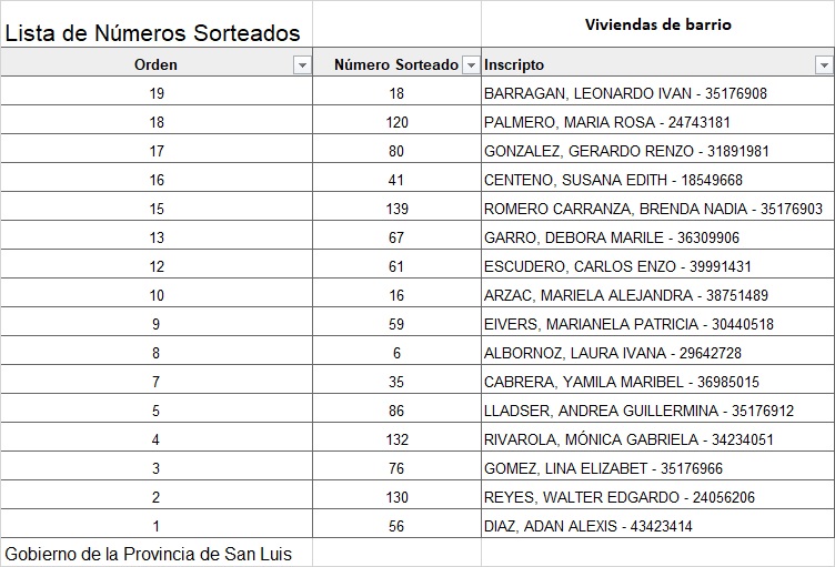 El Gobierno provincial desarrolló el sorteo de 16 viviendas de barrio y 16 módulos de autoconstrucción asistida en la localidad del departamento Chacabuco. En esta nota, el listado oficial.