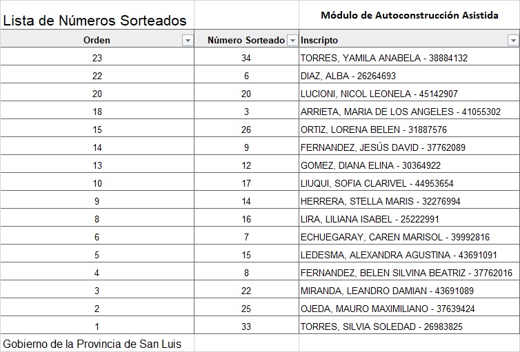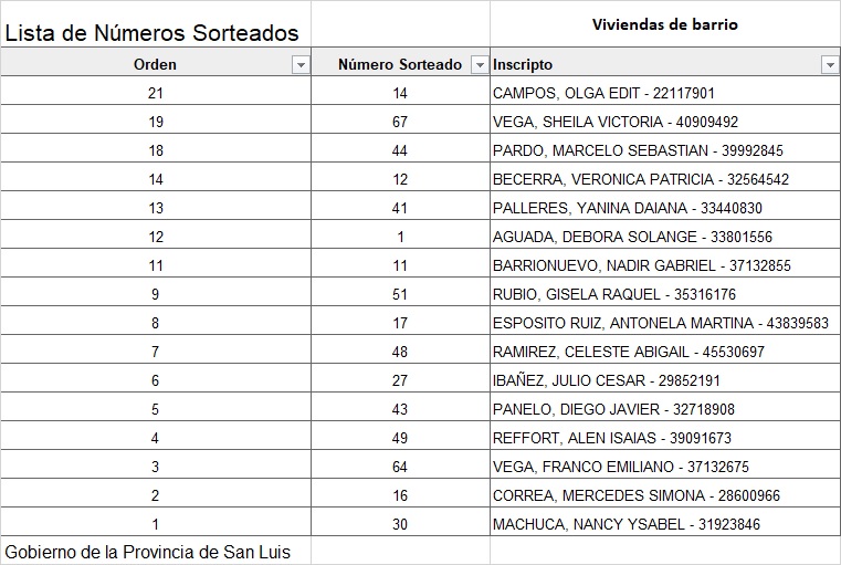 El Gobierno provincial desarrolló el sorteo de 16 viviendas de barrio y 16 módulos de autoconstrucción asistida en la localidad del departamento Dupuy. En esta nota, el listado oficial.