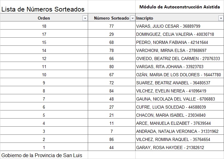 El Gobierno provincial desarrolló el sorteo de 16 módulos de autoconstrucción asistida en la localidad del departamento Ayacucho. En esta nota, el listado oficial.