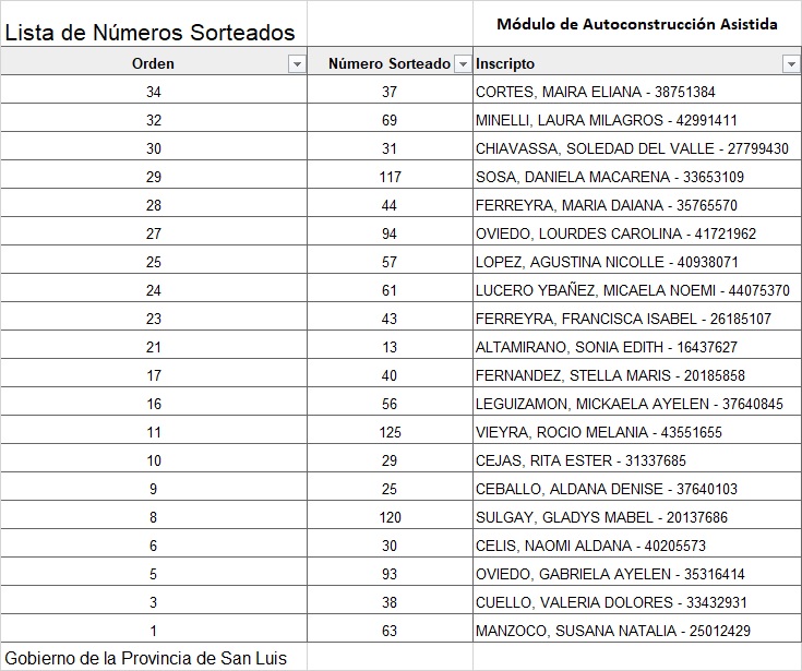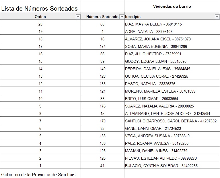 El Gobierno provincial desarrolló el sorteo de 20 viviendas de barrio y 20 módulos de autoconstrucción asistida en la localidad del departamento Chacabuco. En esta nota, el listado oficial.