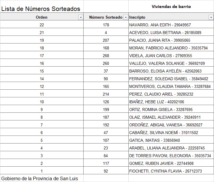 El Gobierno provincial desarrolló el sorteo de 20 viviendas de barrio en la localidad del departamento Ayacucho. En esta nota, el listado oficial.