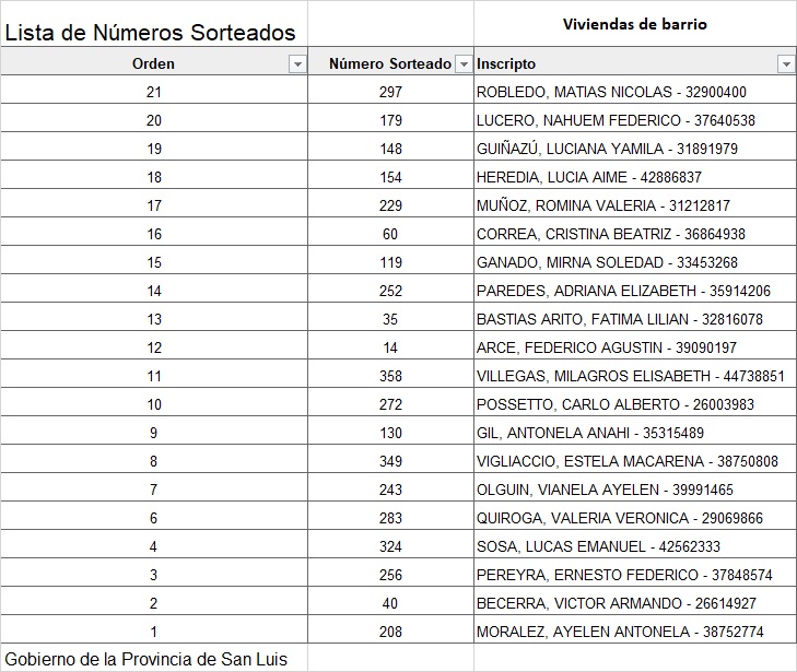 El Gobierno provincial desarrolló el sorteo de 20 viviendas de barrio en la localidad del departamento Pringles. En esta nota, el listado oficial.