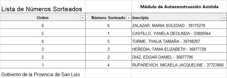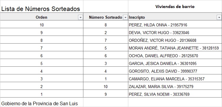El Gobierno provincial desarrolló el sorteo de 10 viviendas de barrio y 6 módulos de autoconstrucción asistida en la localidad del departamento Chacabuco. En esta nota, el listado oficial.