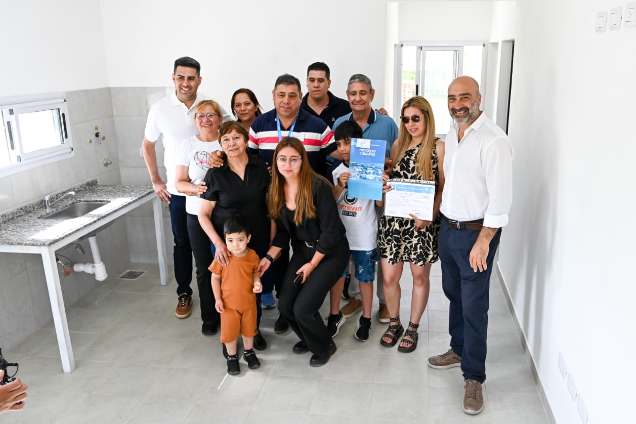 Junto a su madre, sus hijos y su nieto, Rojo recibió las llaves de su sueño de manos del intendente comisionado de Paso Grande, Rodrigo Barroso, y del secretario de Política Habitacional, Hugo Rossi.