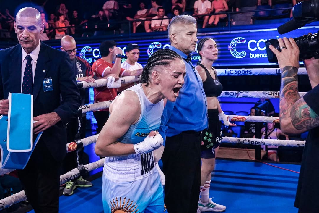 En un combate pactado a diez asaltos por el Título Argentino Mosca, que se encontraba vacante, la mercedina de 26 años desplegó una estrategia inteligente y una preparación física impecable que le permitió dominar las acciones desde el inicio.