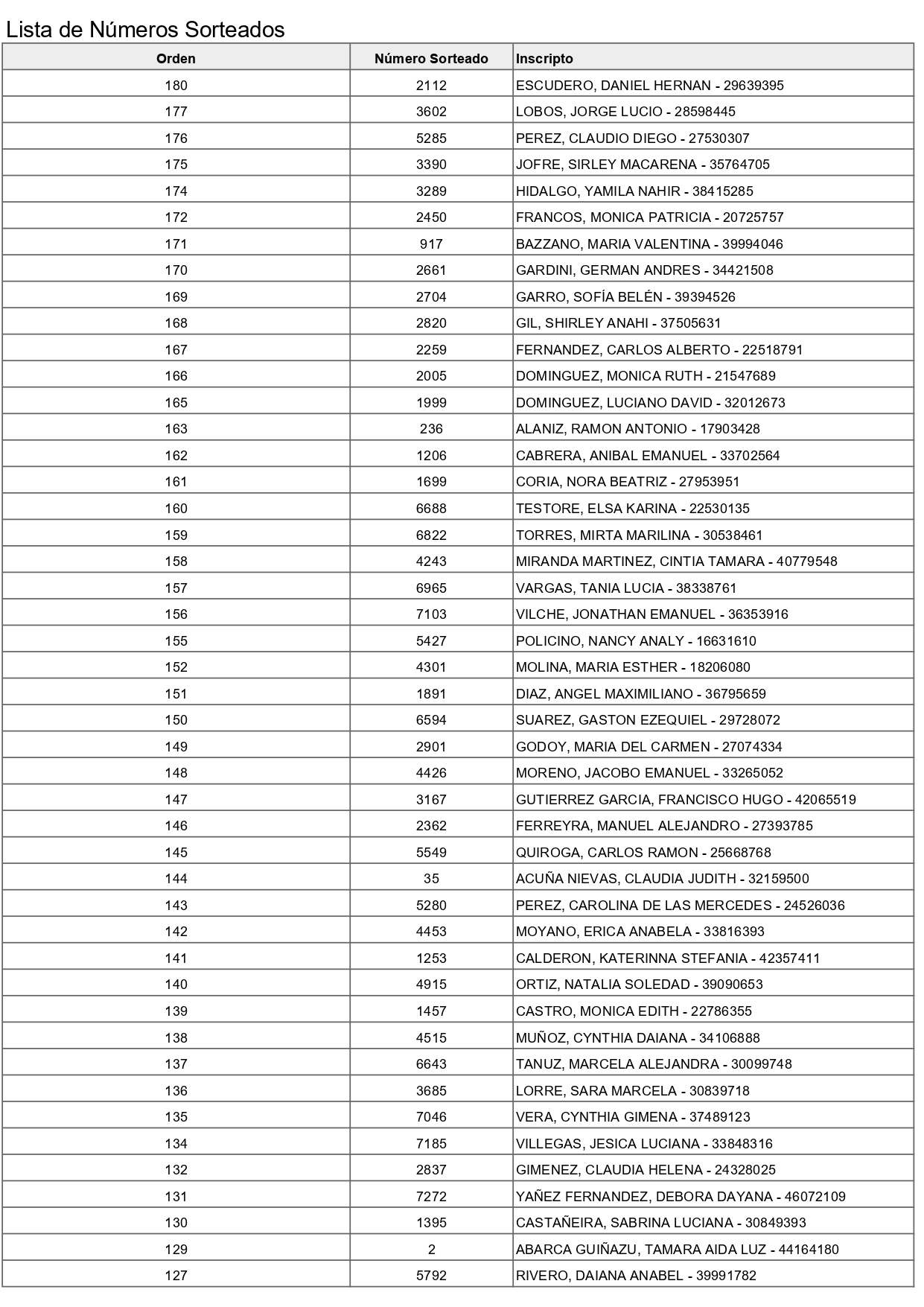 Resultados del sorteo de los inscriptos de Villa Mercedes