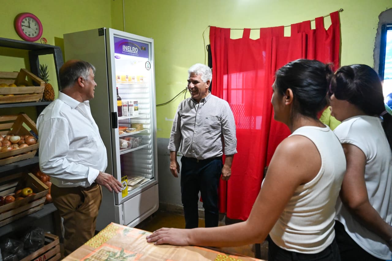 En medio de la conversación, funcionarios de la cartera de Desarrollo Productivo señalaron que en Beazley hay alrededor de 50 emprendimientos dedicados a diversos rubros. Algunos, como los propietarios de ‘Granja Amabelia’ y de ‘Pizzería José’, se acercaron para mostrarles y obsequiarles sus productos al Gobernador.