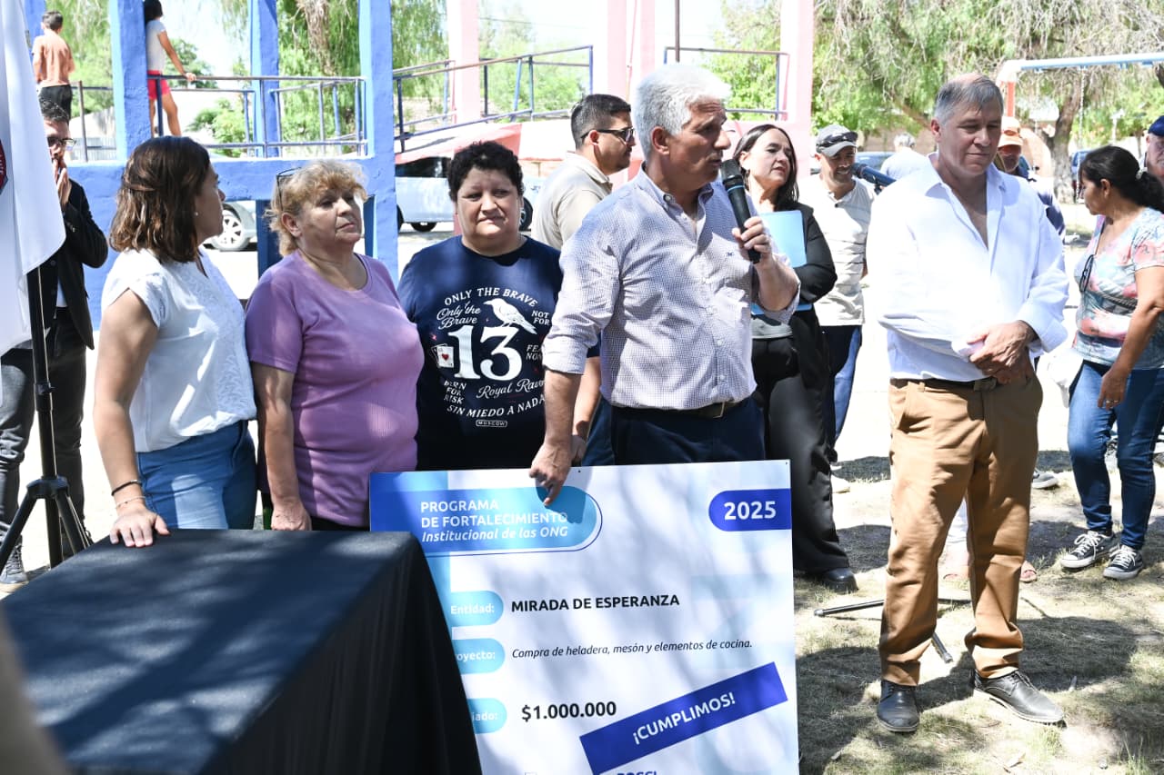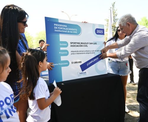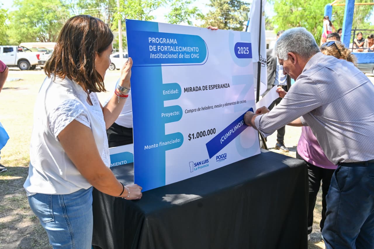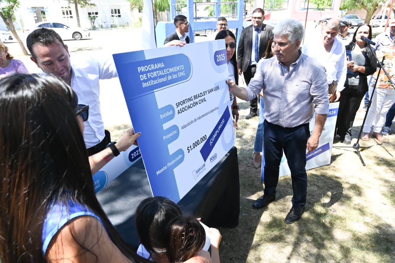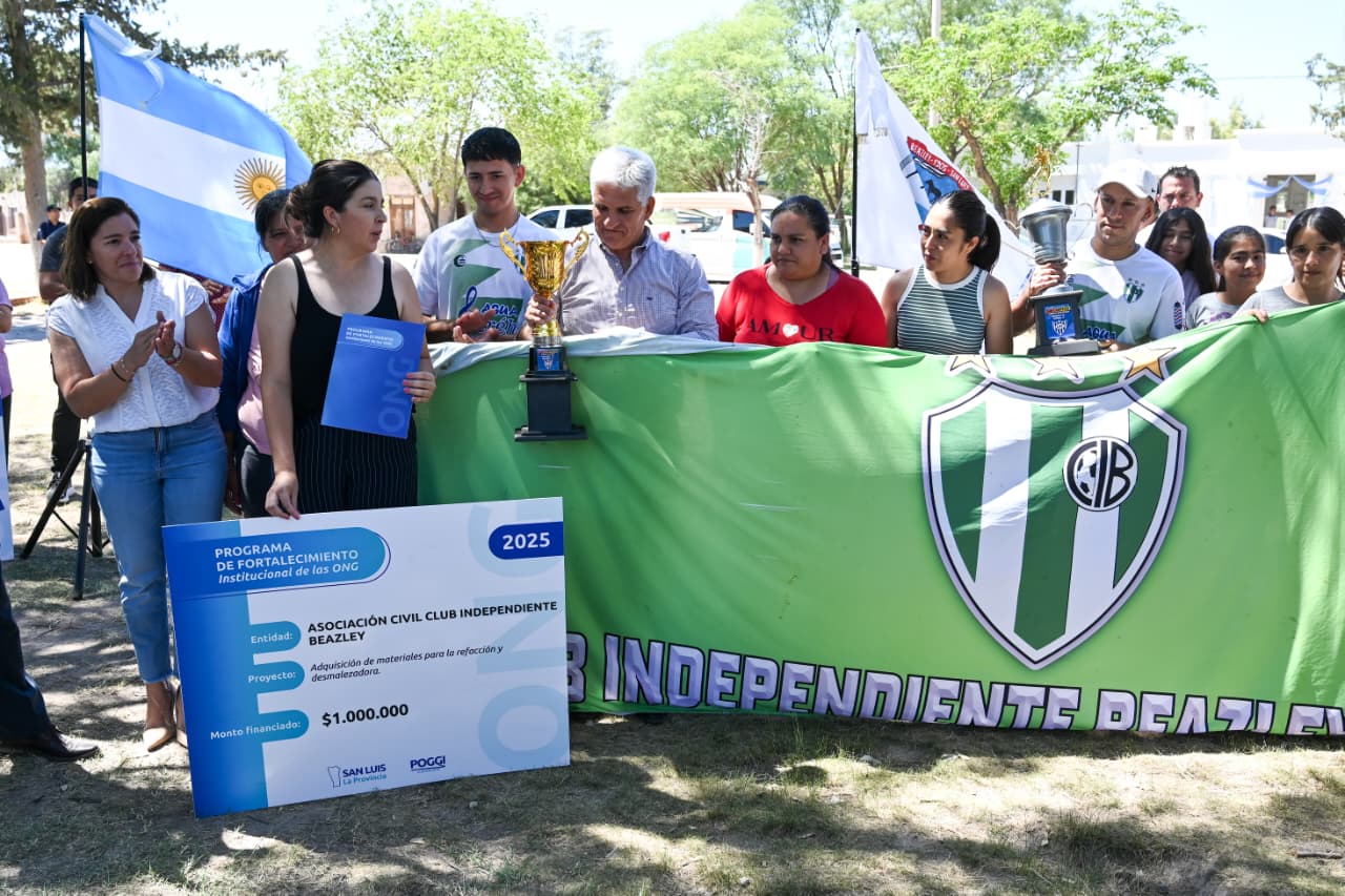 Este lunes, la agenda del gobernador Claudio Poggi en Beazley continuó con la entrega de ‘Cumplimos’ y decretos para nuevas iniciativas sociales, deportivas y de infraestructura. Las asociaciones beneficiadas fueron ‘Mirada de Esperanza’, Sporting Beazley San Luis, el Centro de Jubilados y Pensionados, y el Club Independiente de Beazley. Cada una de ellas completó con éxito su primer proyecto, lo que las habilitó para acceder a nuevos fondos en el marco del programa de Fortalecimiento Institucional de las ONG.