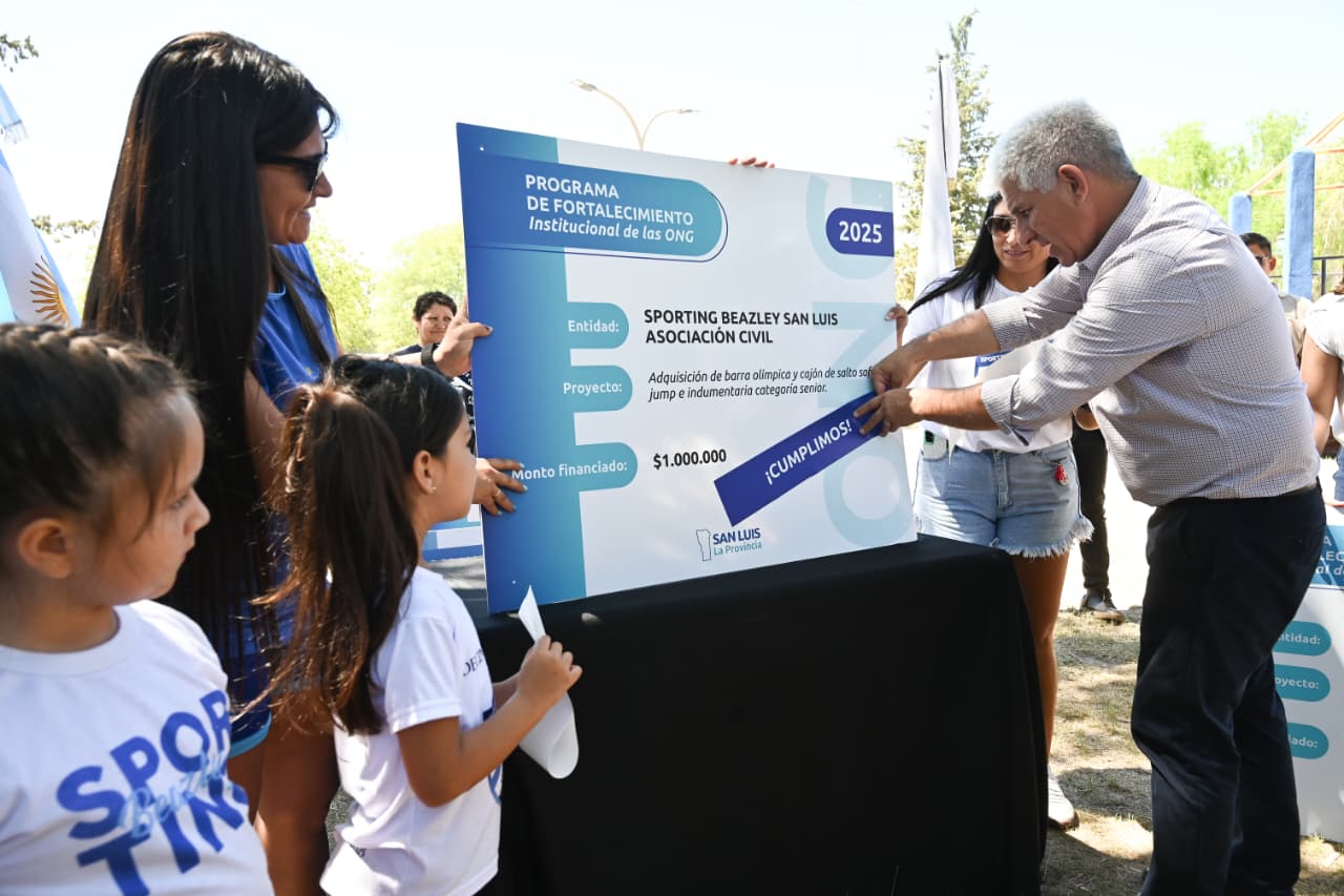 Este lunes, la agenda del gobernador Claudio Poggi en Beazley continuó con la entrega de ‘Cumplimos’ y decretos para nuevas iniciativas sociales, deportivas y de infraestructura. Las asociaciones beneficiadas fueron ‘Mirada de Esperanza’, Sporting Beazley San Luis, el Centro de Jubilados y Pensionados, y el Club Independiente de Beazley. Cada una de ellas completó con éxito su primer proyecto, lo que las habilitó para acceder a nuevos fondos en el marco del programa de Fortalecimiento Institucional de las ONG.