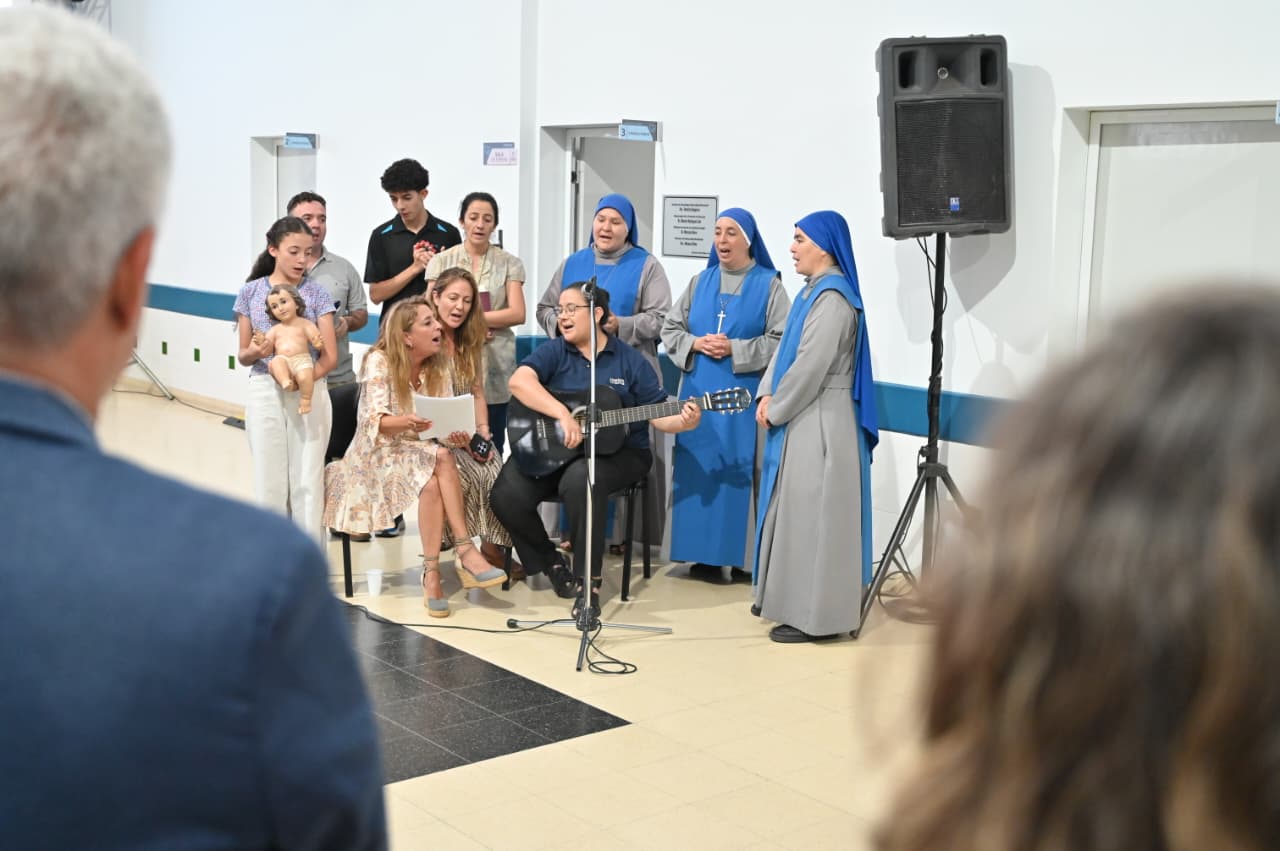Antes de concluir el recorrido, Poggi paró a escuchar e incluso participar en algunos villancicos que recitó el coro de la Maternidad, en alusión a las fiestas de fin de año.