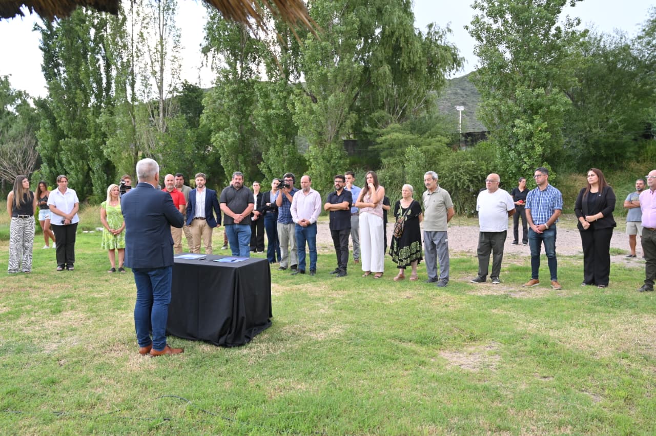 La rueda de la obra pública vuelve a girar oficialmente en Potrero de los Funes a partir del convenio que rubricaron este martes el intendente, Ignacio Olagaray y el ministro de Gobierno, Gonzalo Amondarain, como parte del programa ‘Construyendo con Tu Pueblo’. El gobernador Claudio Poggi estuvo presente en las orillas del perilago, donde se desarrolló el acto, y destacó la importancia de volver a trazar puentes de trabajo conjunto entre el Estado provincial y la Comuna.
