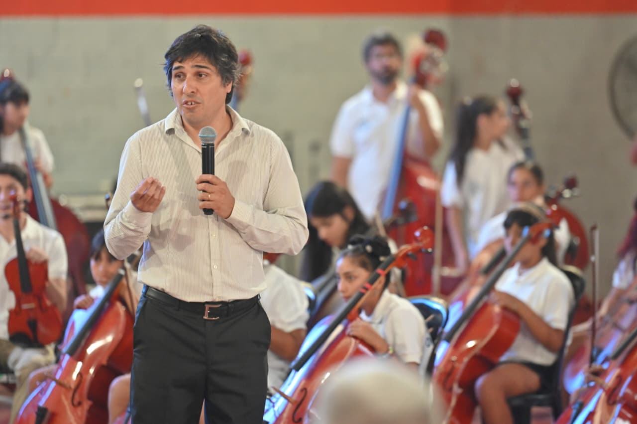 El gobernador Claudio Poggi fue invitado a la presentación del grupo integrado por 60 niños y adolescentes que asisten al Centro N°4 de la Red de Asistencia Familiar. Son jóvenes que, en su mayoría, encuentran en la música la forma de superar día a día contextos de vulnerabilidad social.