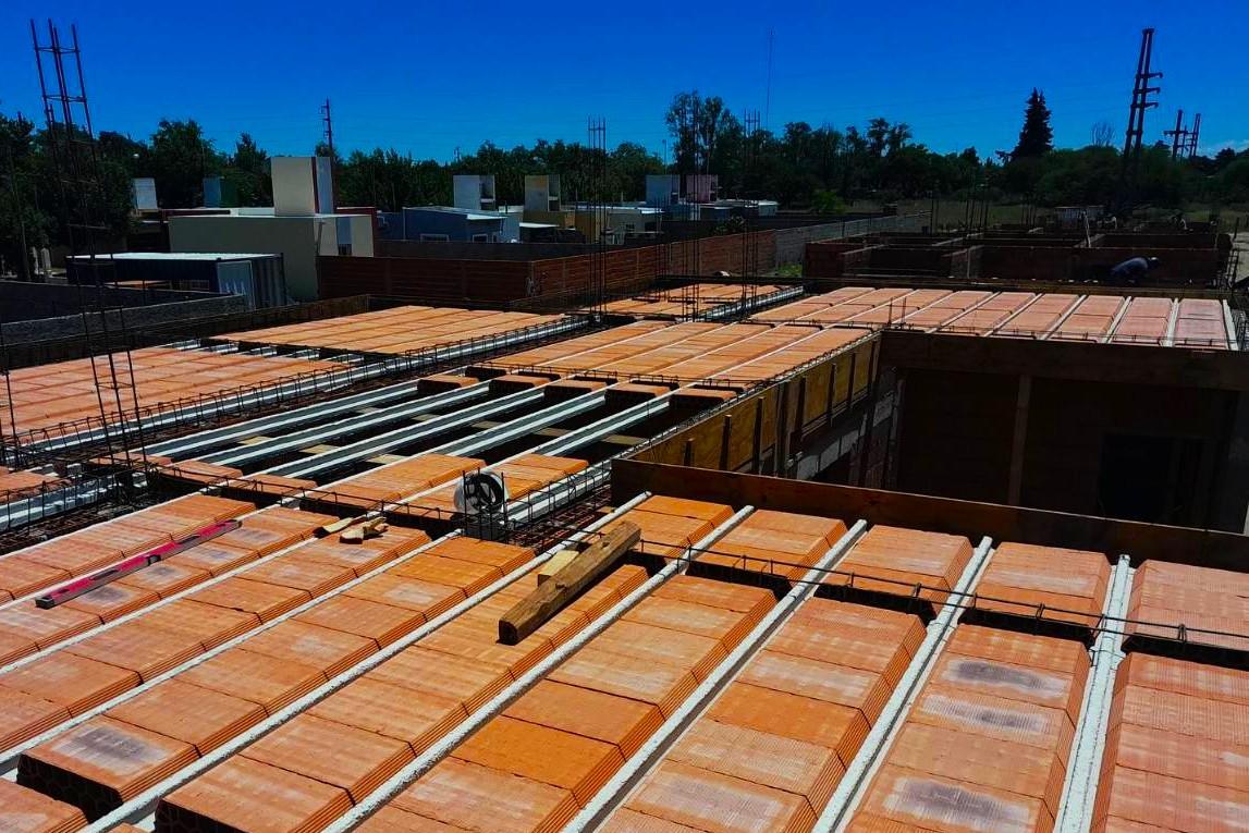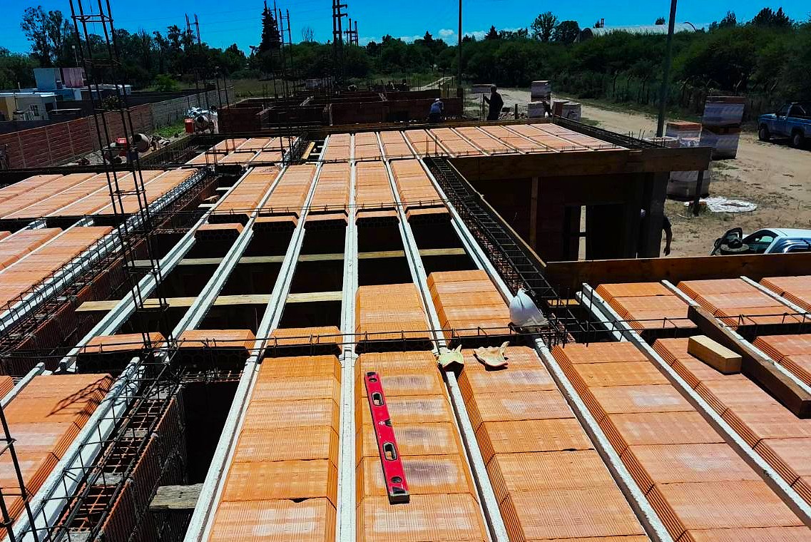 En el caso de Fraga, se trabaja en diez unidades que registran avances significativos en su etapa estructural. Actualmente, se ejecutan losas mediante el sistema de viguetas y bloques cerámicos, junto con la disposición de armaduras de acero y encofrados, correspondientes a la etapa de obra gruesa.