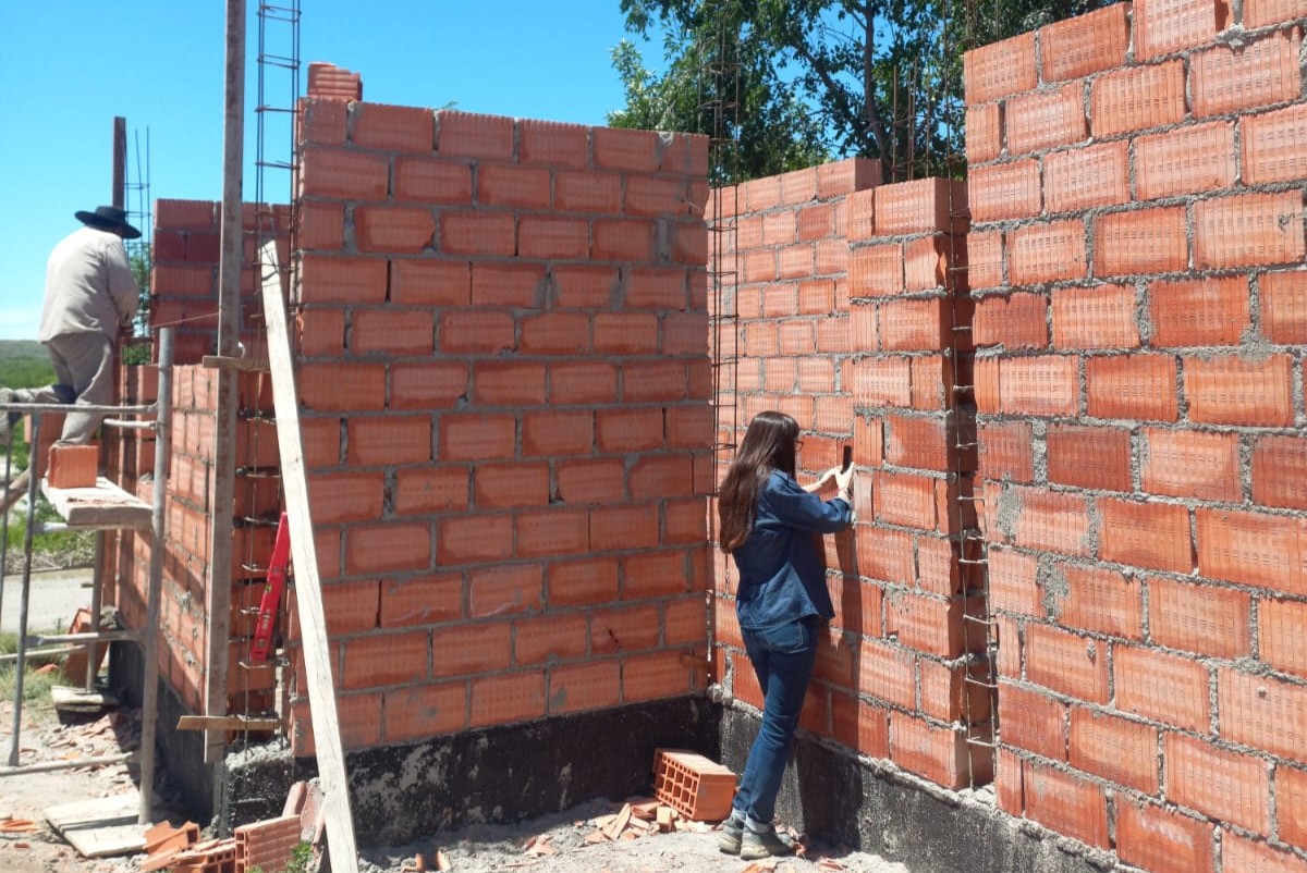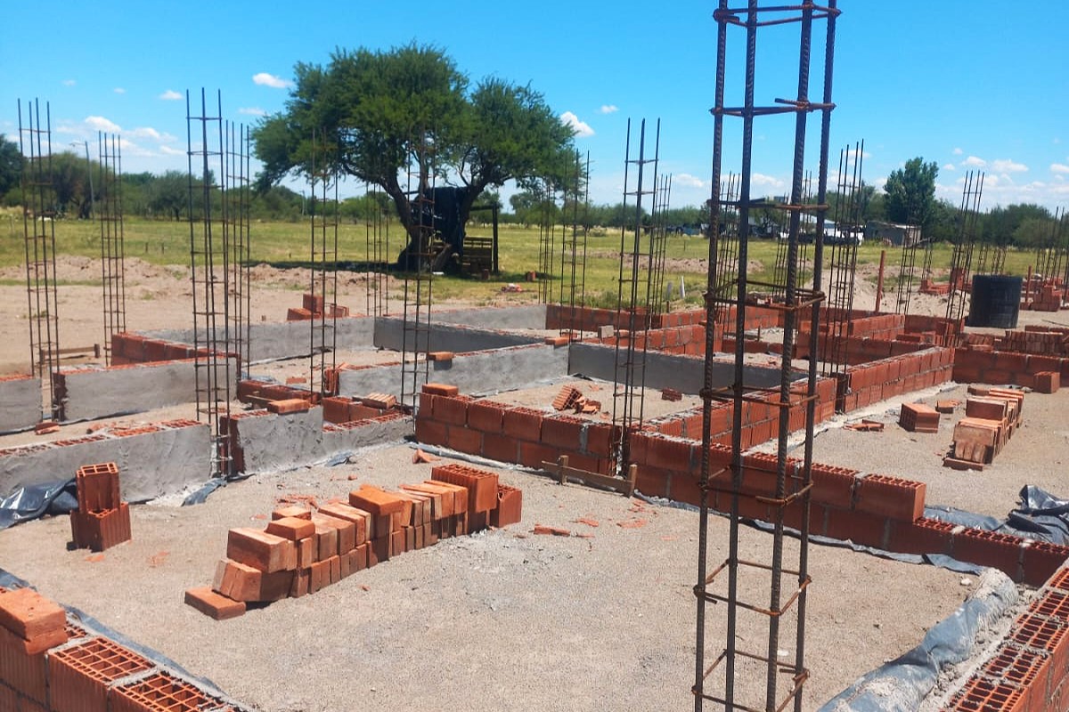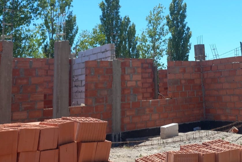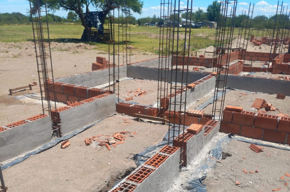 En Juan Llerena se ejecutan cuatro nuevas viviendas que se encuentran en etapa de obra gruesa. Se inició el levantamiento de mampostería de ladrillos cerámicos, con muros portantes y divisorios ya ejecutados, además de columnas de hormigón armado en proceso de conformación.