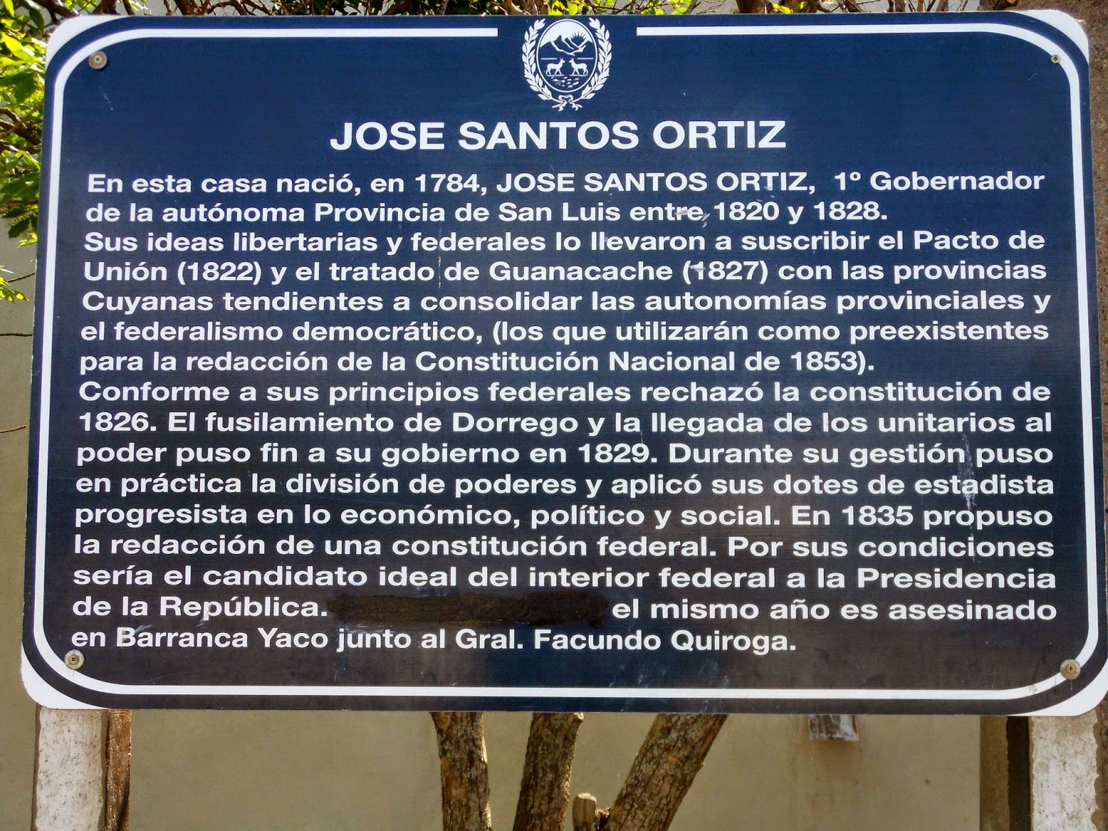 La Casa Histórica de José Santos Ortiz, conocida popularmente como “la Casa de los Gobernadores”, se erige frente a la actual Plaza Granaderos Puntanos, en el edificio que albergó a la Escuela Superior N°73, inaugurada en 1874. Este inmueble es hoy uno de los símbolos más valiosos del patrimonio histórico de la localidad. A pocos metros, un monumento de granito con reseña explicativa resguarda los restos de Ortiz y de su esposa, repatriados en el año 2010, fortaleciendo el valor memorial del lugar.