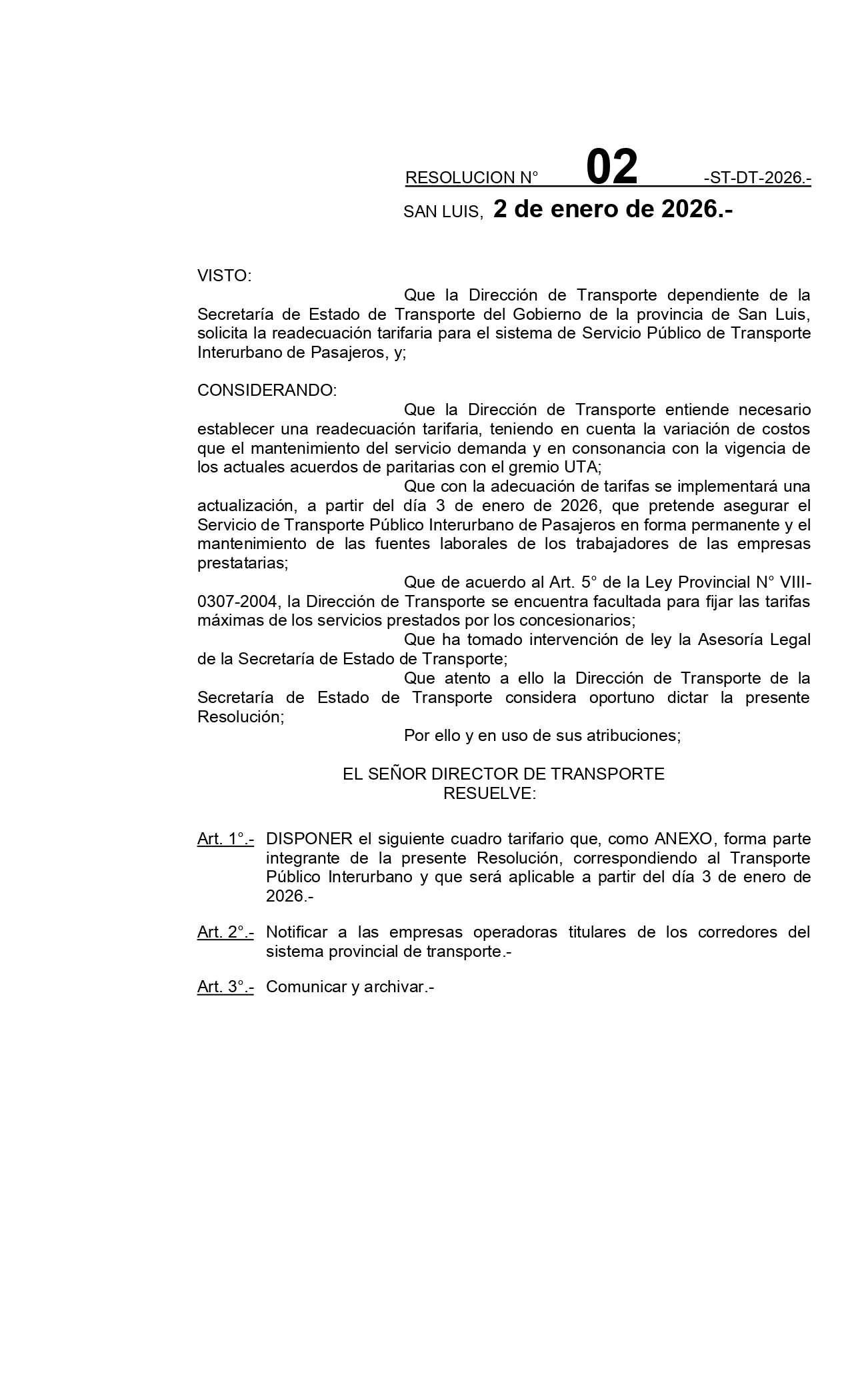Entrará en vigencia una actualización en las tarifas del transporte interurbano, que afectará a los servicios de corta, media y larga distancia de toda la provincia. La medida, anunciada por la dirección de Transporte, tiene como objetivo garantizar la sostenibilidad y continuidad del sistema.