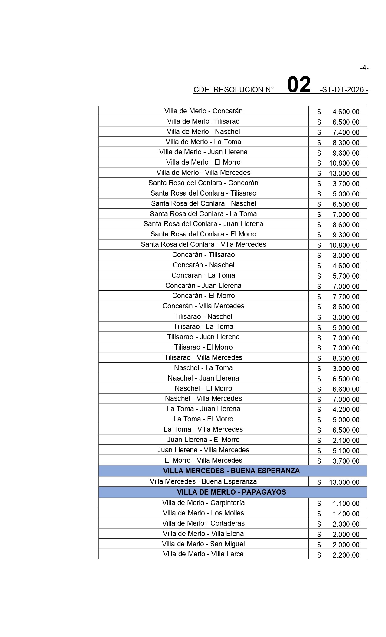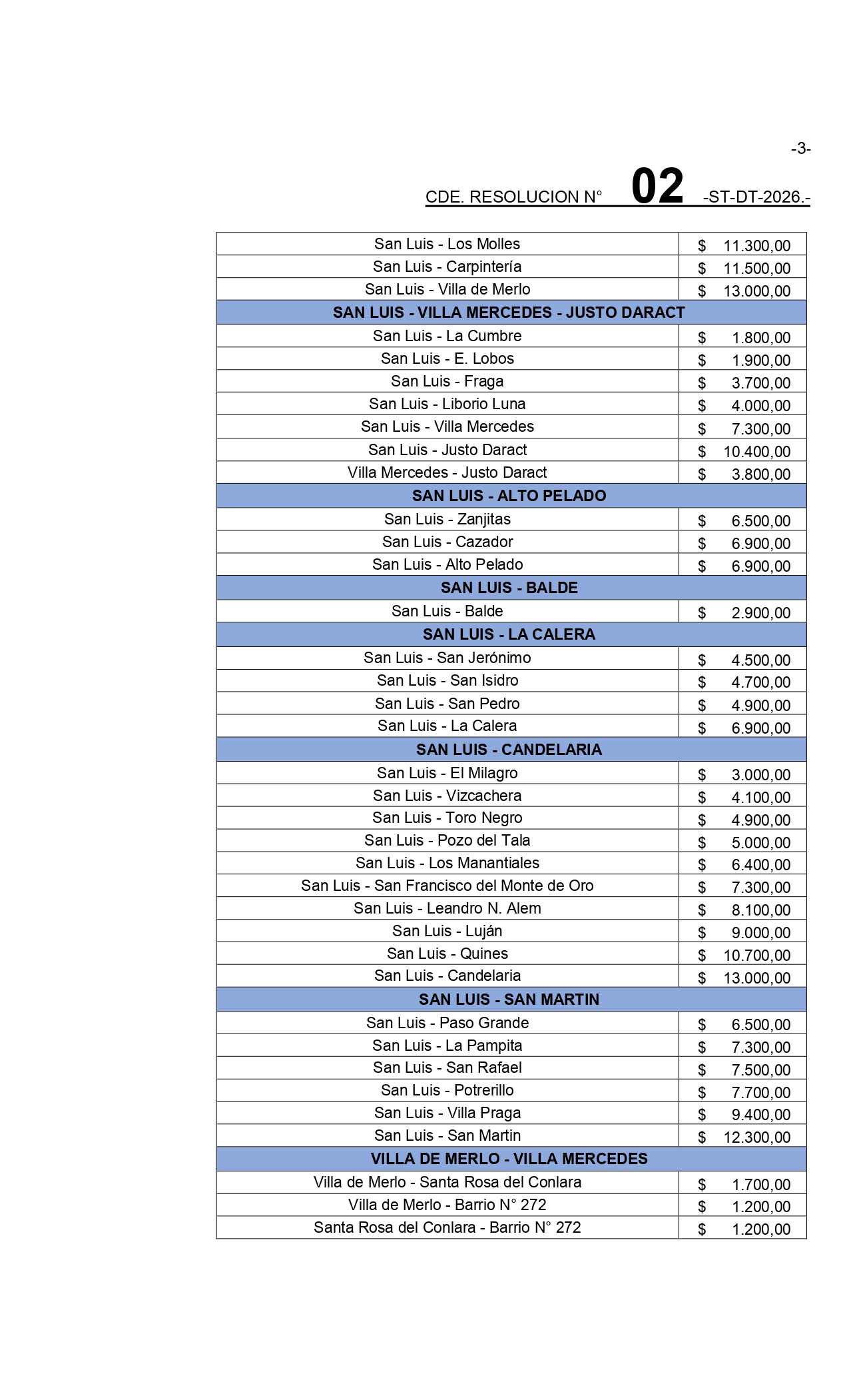 A continuación, se detalla el nuevo cuadro tarifario: