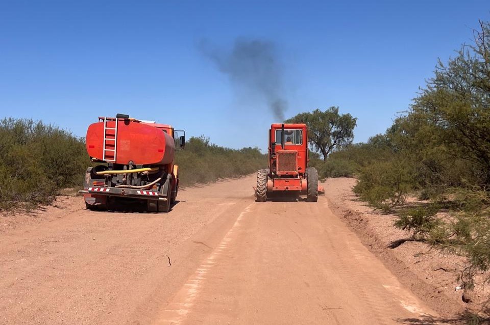 También intervinieron la ruta provincial N°16, en la zona de la estancia 25 de Abril, con trabajos de perfilado y humectación, fundamentales para garantizar una mejor transitabilidad. En la ruta provincial N°22 B, en tanto, efectuaron arreglos en el tramo no pavimentado mediante perfilado y aporte de humedad.