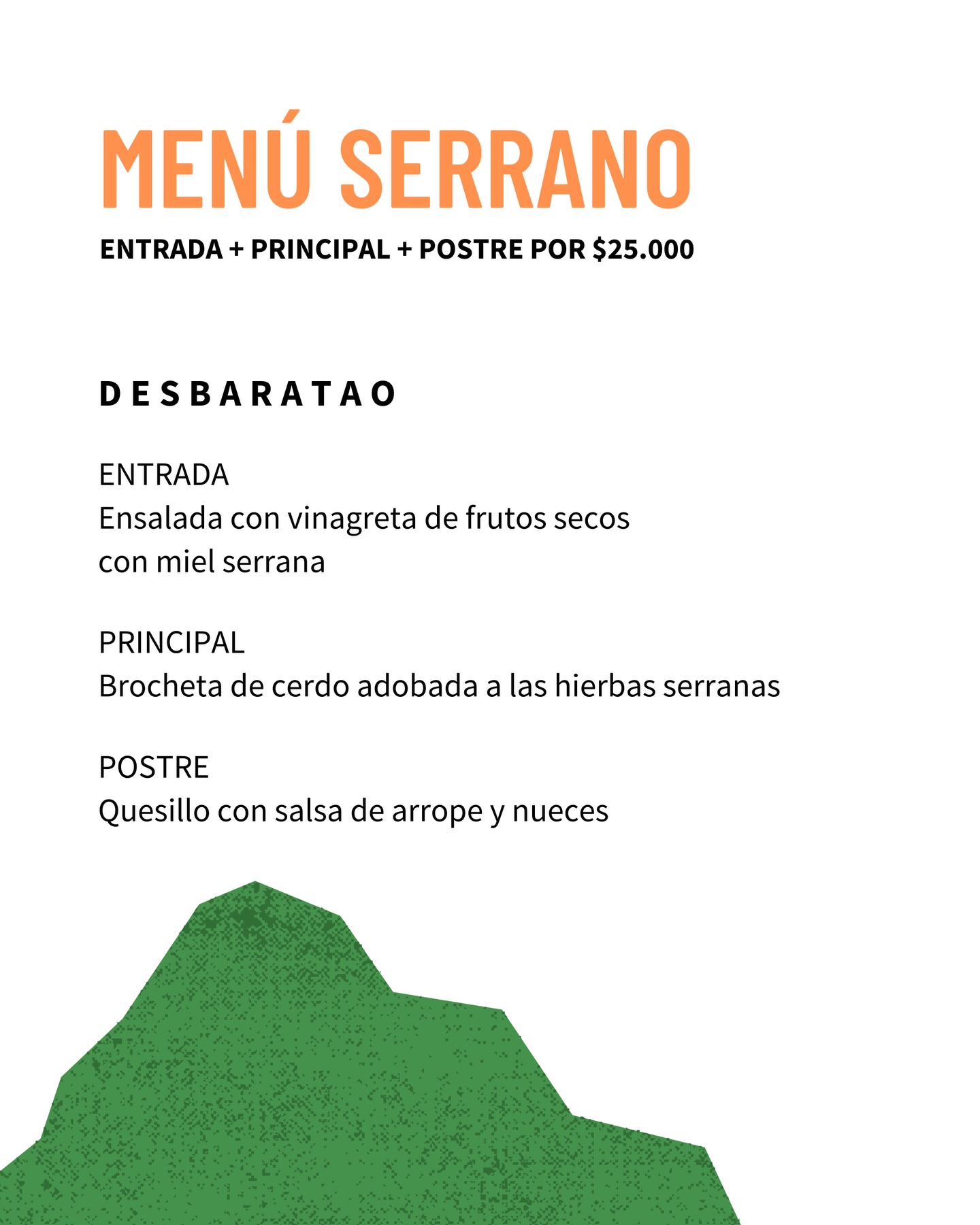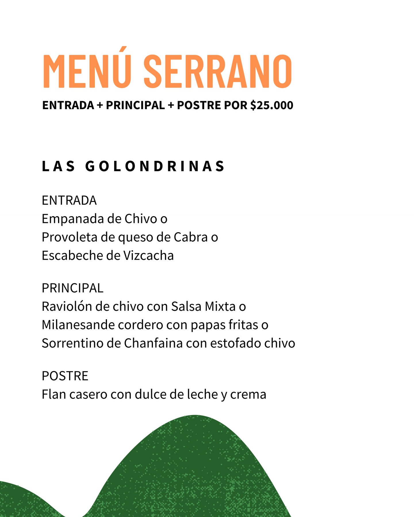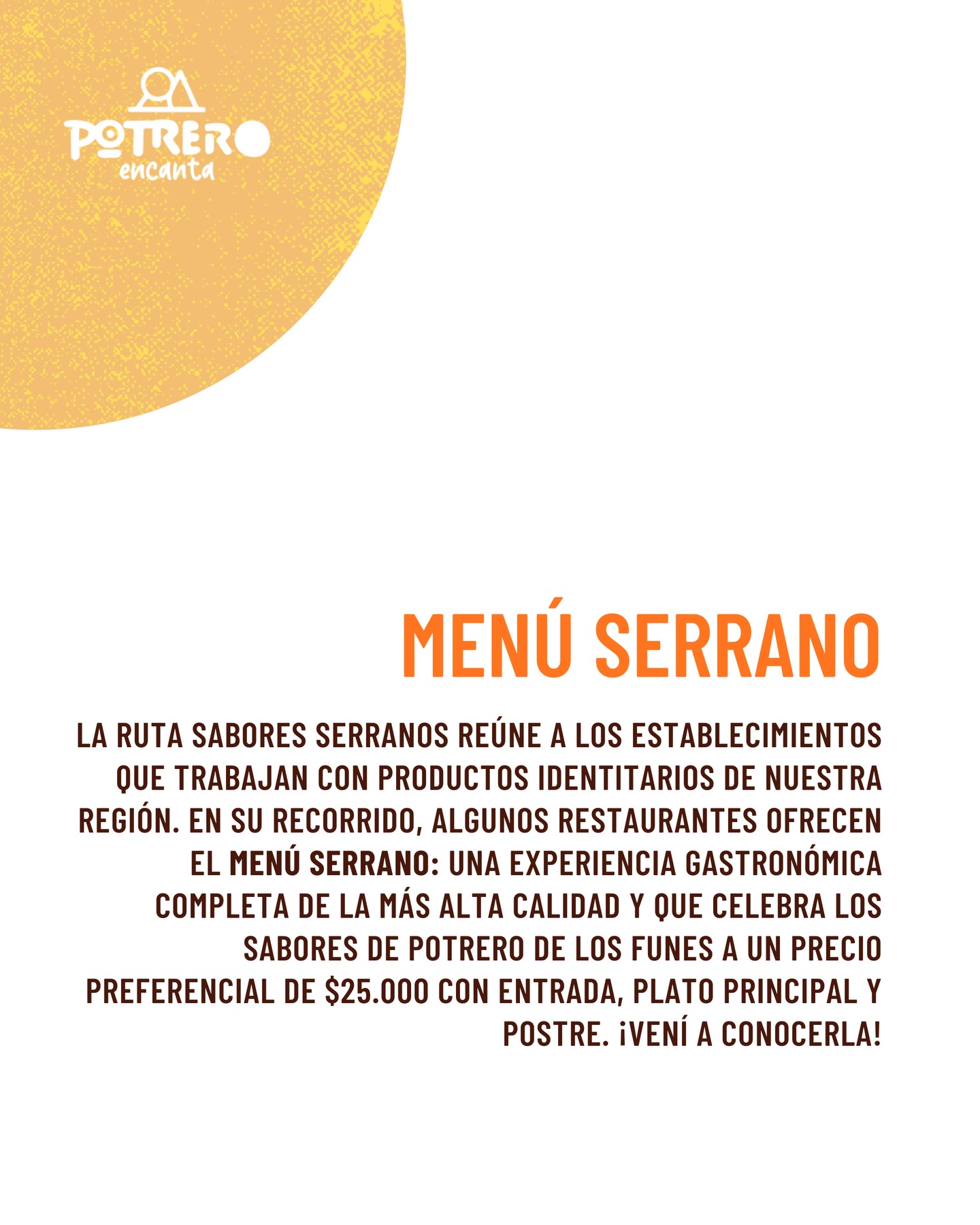 Por un valor de $25.000, los comensales pueden disfrutar de un recorrido completo por los sabores serranos, en una experiencia pensada para compartir, disfrutar y elegir lo nuestro, fortaleciendo el vínculo entre productores, cocineros y consumidores.
