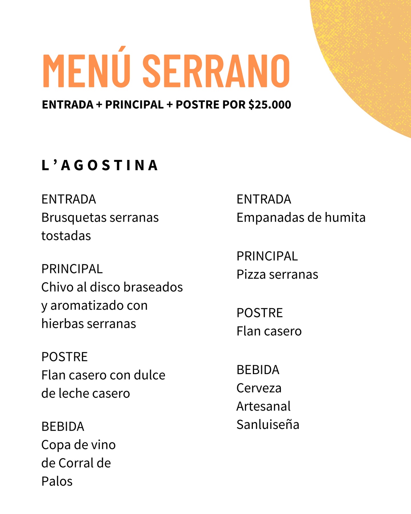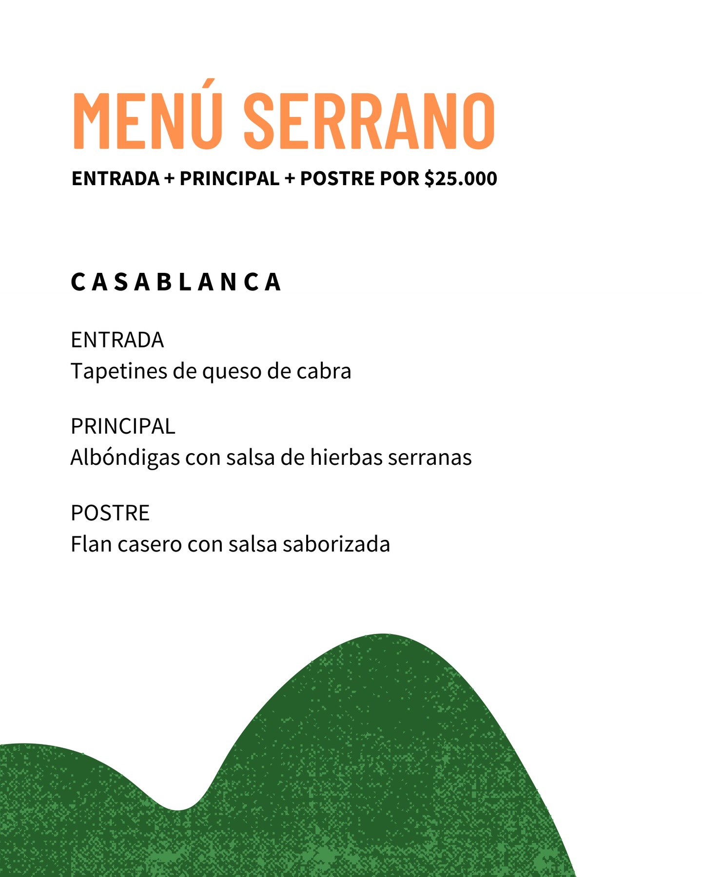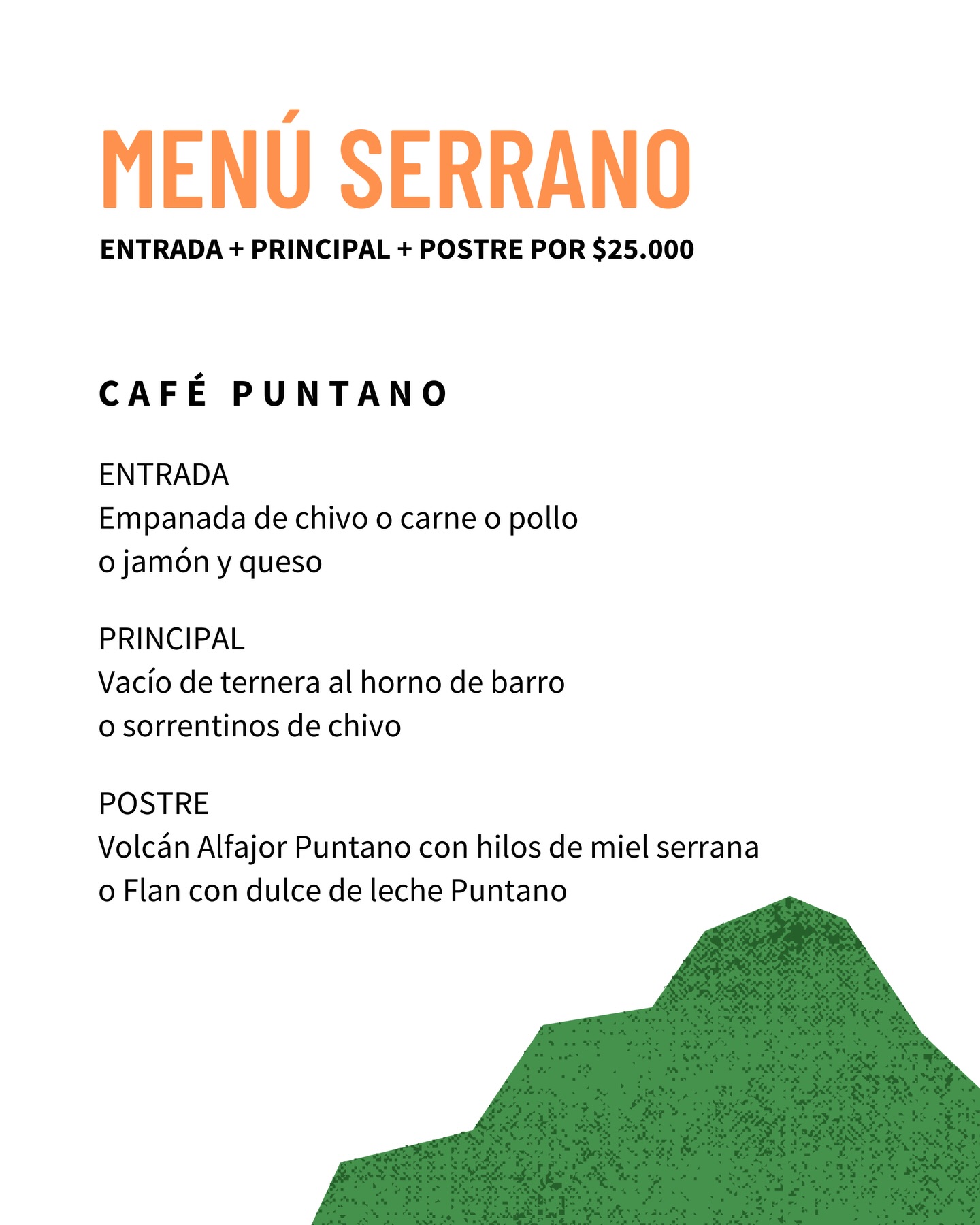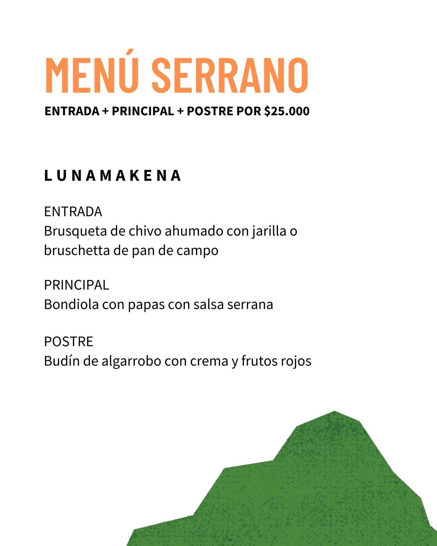 Por un valor de $25.000, los comensales pueden disfrutar de un recorrido completo por los sabores serranos, en una experiencia pensada para compartir, disfrutar y elegir lo nuestro, fortaleciendo el vínculo entre productores, cocineros y consumidores.