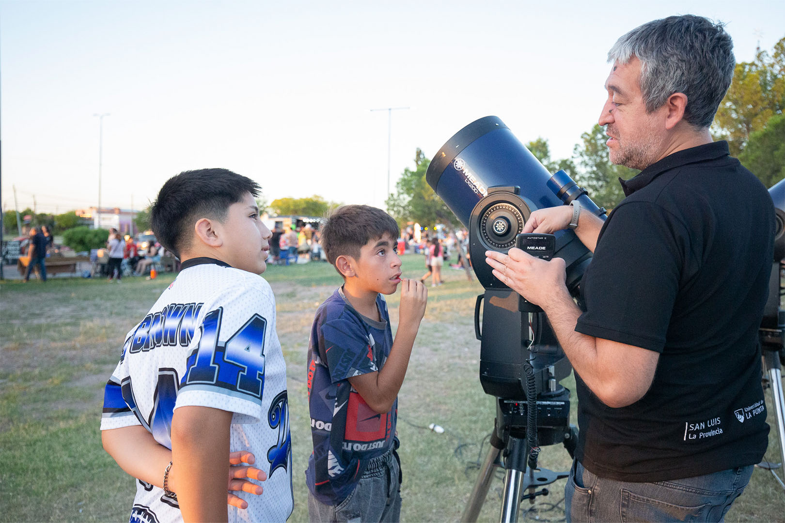 En una actividad organizada por la municipalidad de San Luis en la Plaza Virgen Desatanudos, la Universidad de La Punta estuvo presente con el espacio de Divulgación Científica con los telescopios nocturnos y lentes de realidad virtual.