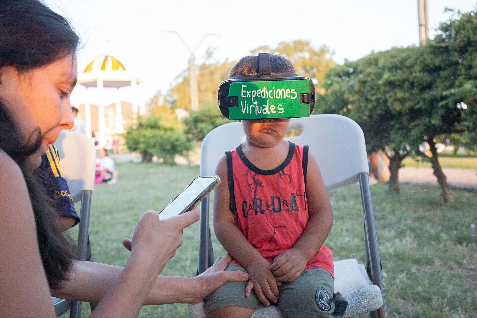 La pequeña Olivia, acompañada por su mamá, muy tímida pero contenta después de ver los distintos escenarios de realidad virtual contó: “Vi elefantes, vacas, caballos, me gustó mucho”.
