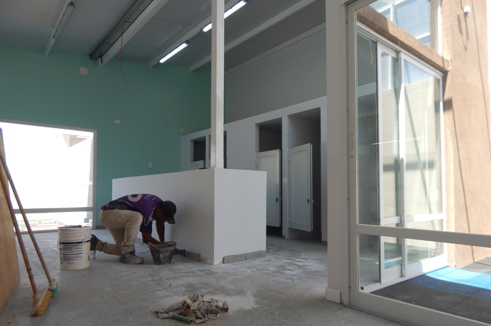Asimismo, se finalizaron los tabiques interiores y los sectores de sanitarios, que cuentan con divisiones individuales y estructuras listas para la colocación del equipamiento y los artefactos correspondientes. Las superficies ya fueron pintadas y las instalaciones eléctricas y de iluminación presentan un grado avanzado de ejecución.