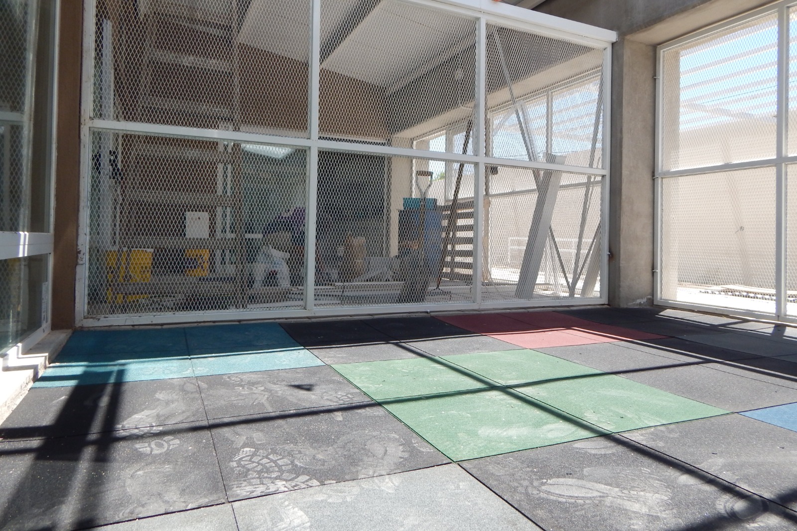 En las áreas comunes y patios internos se colocó solería de goma con baldosas encastrables de colores, especialmente diseñada para espacios destinados a la primera infancia, lo que garantiza condiciones adecuadas de seguridad y confort. En tanto, los pisos interiores se encuentran ejecutados, restando únicamente tareas menores de limpieza y detalles finales.