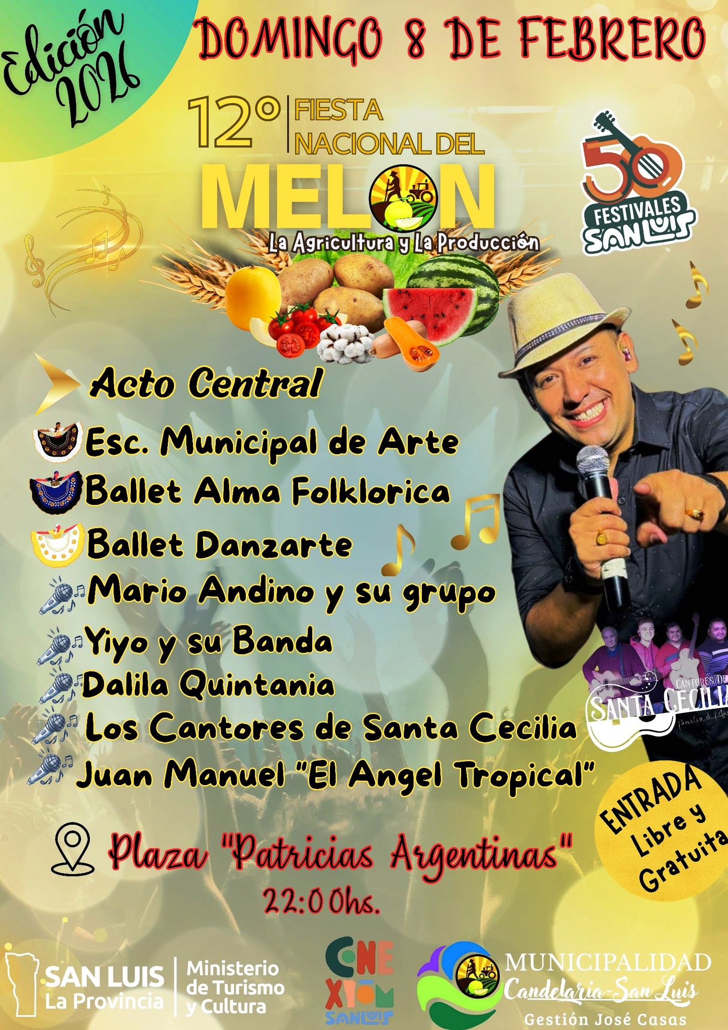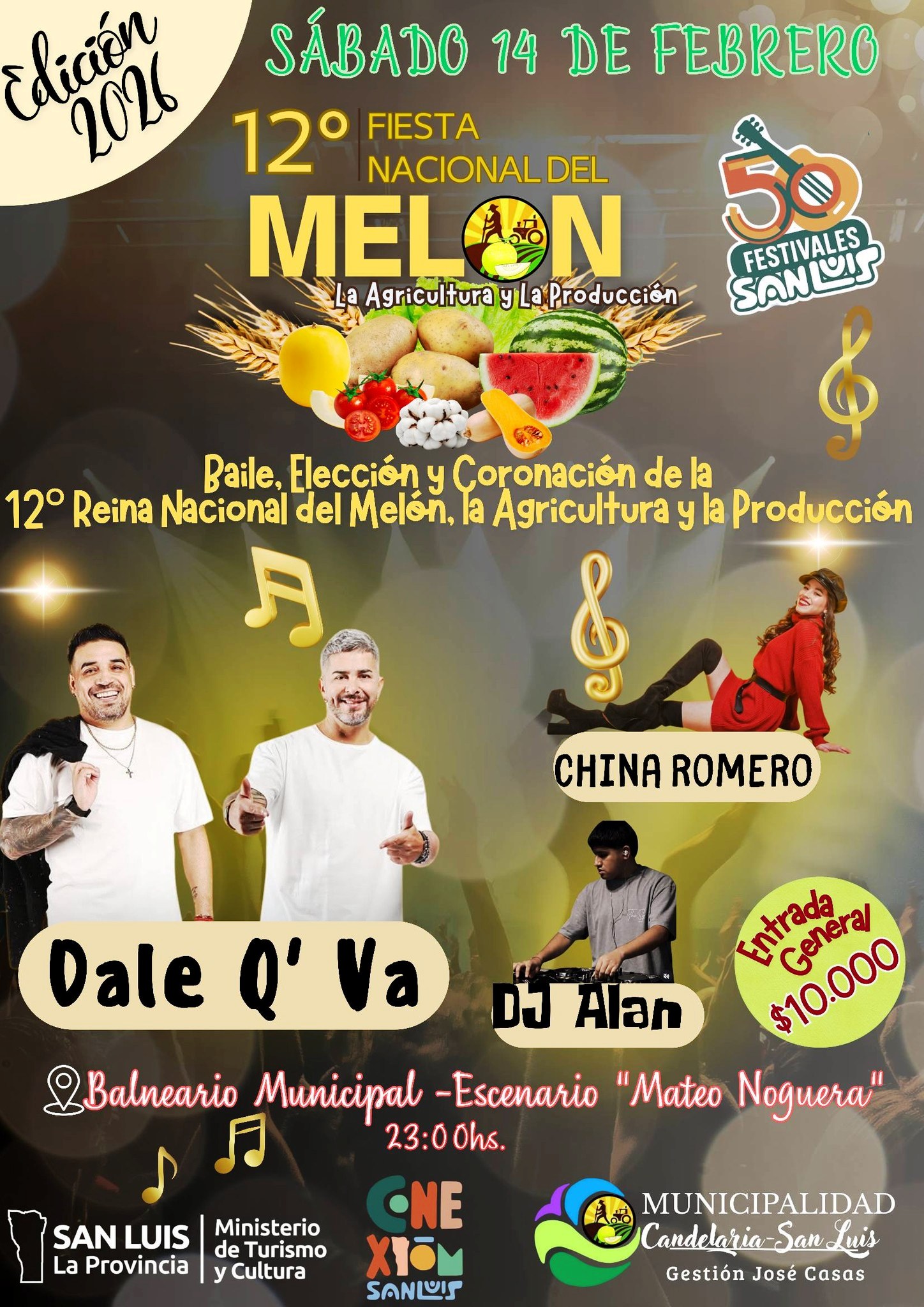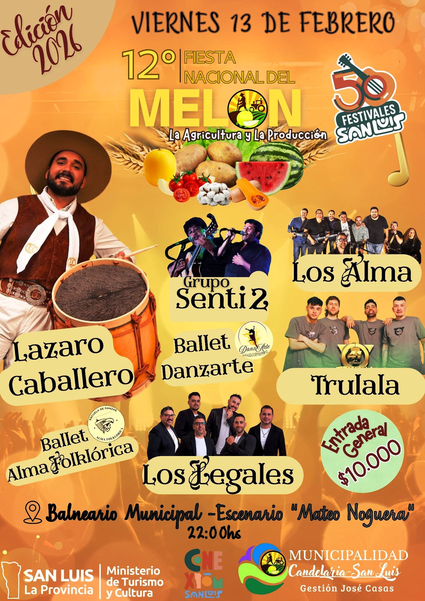 Febrero llega con la 12° Fiesta Nacional del Melón, la Agricultura y la Producción, el evento que combina identidad, cultura y música, reuniendo en cada una de sus ediciones a miles de vecinos y visitantes de distintos puntos de San Luis y provincias vecinas.