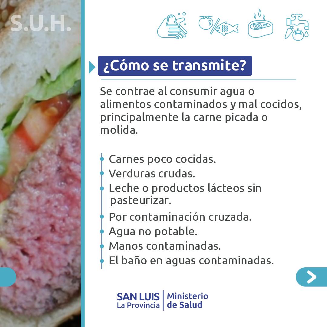 El SUH es una enfermedad producida, en la mayoría de los casos, por bacterias presentes en alimentos o agua contaminados. Puede generar complicaciones severas, como daño renal, por lo que su prevención y la consulta médica oportuna resultan fundamentales.