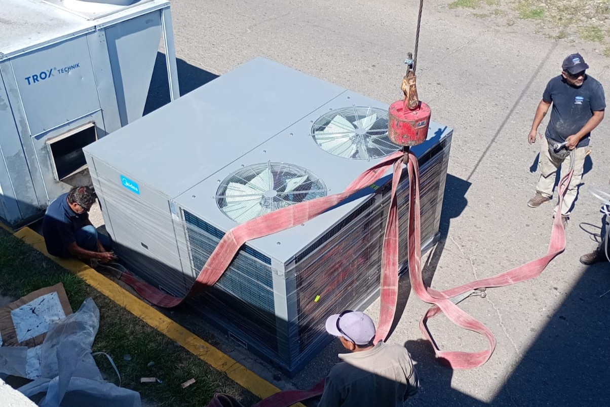 Los equipos instalados corresponden al modelo Unidad Roof Top MIDEA FC por Bomba–30 TR, preparados para climatización central, con mayor eficiencia, capacidad y confiabilidad, en línea con las políticas de mejora continua de la infraestructura sanitaria.
