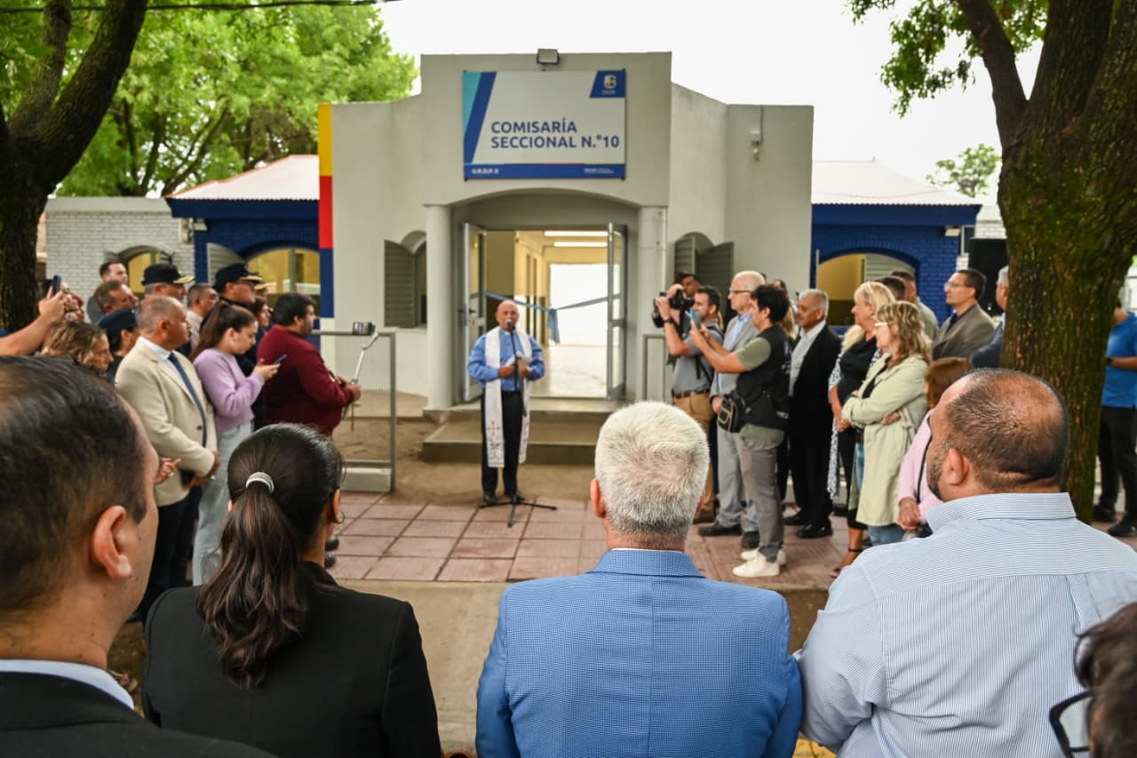 El acto comenzó con el desatado de cinta, el descubrimiento de una placa conmemorativa y la bendición del edificio a cargo del capellán policial Gustavo Méndez Medici. Luego, las autoridades se trasladaron al patio de la comisaría, donde se detallaron los alcances de la obra y la inversión realizada.