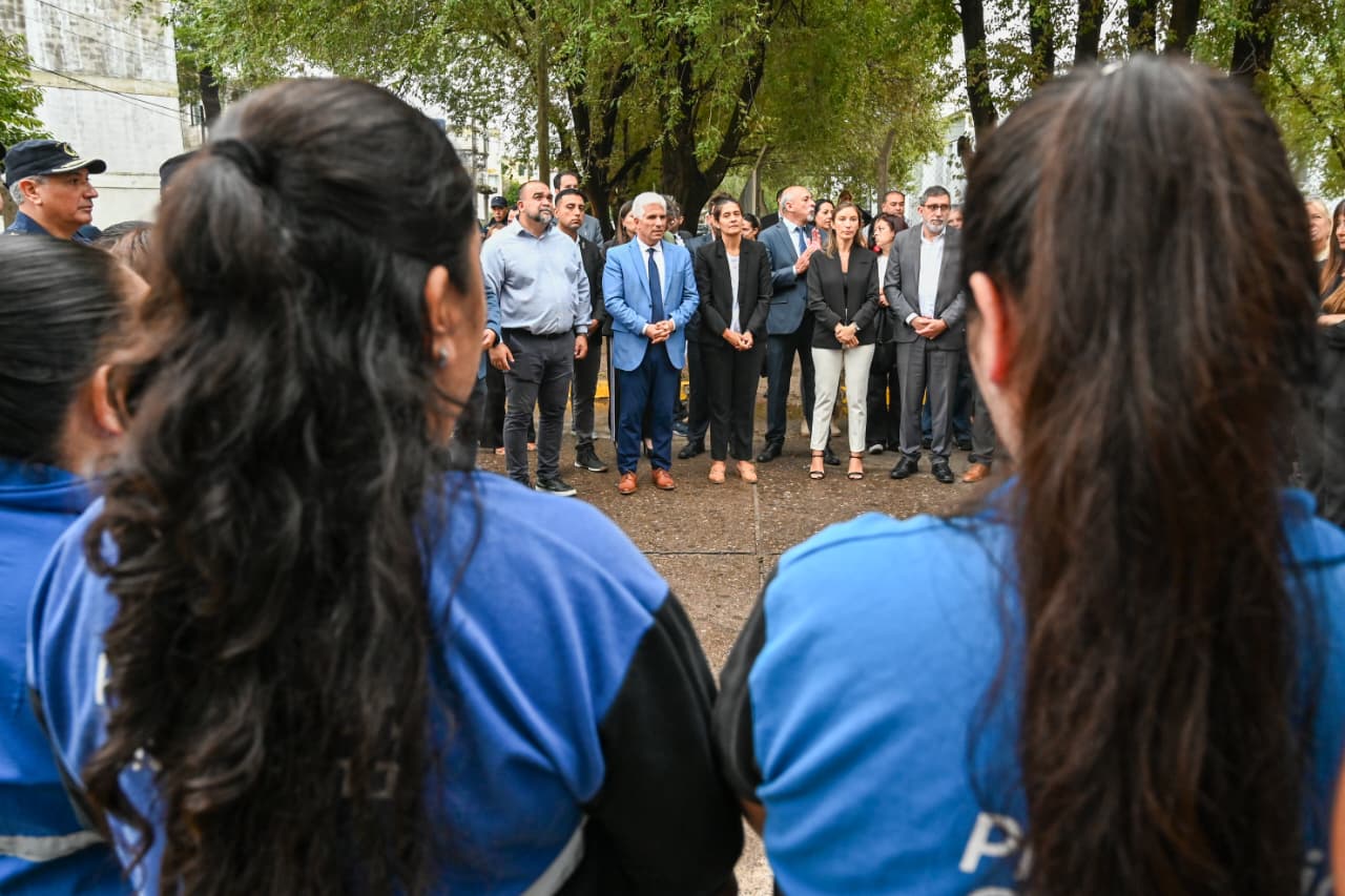 El acto contó con la presencia de la ministro de Seguridad, Nancy Sosa; el intendente Maximiliano Frontera; el presidente de la Agencia de Ciencia y Tecnología, Pablo Guerreiro; entre otros funcionarios, personal policial y vecinos del barrio.