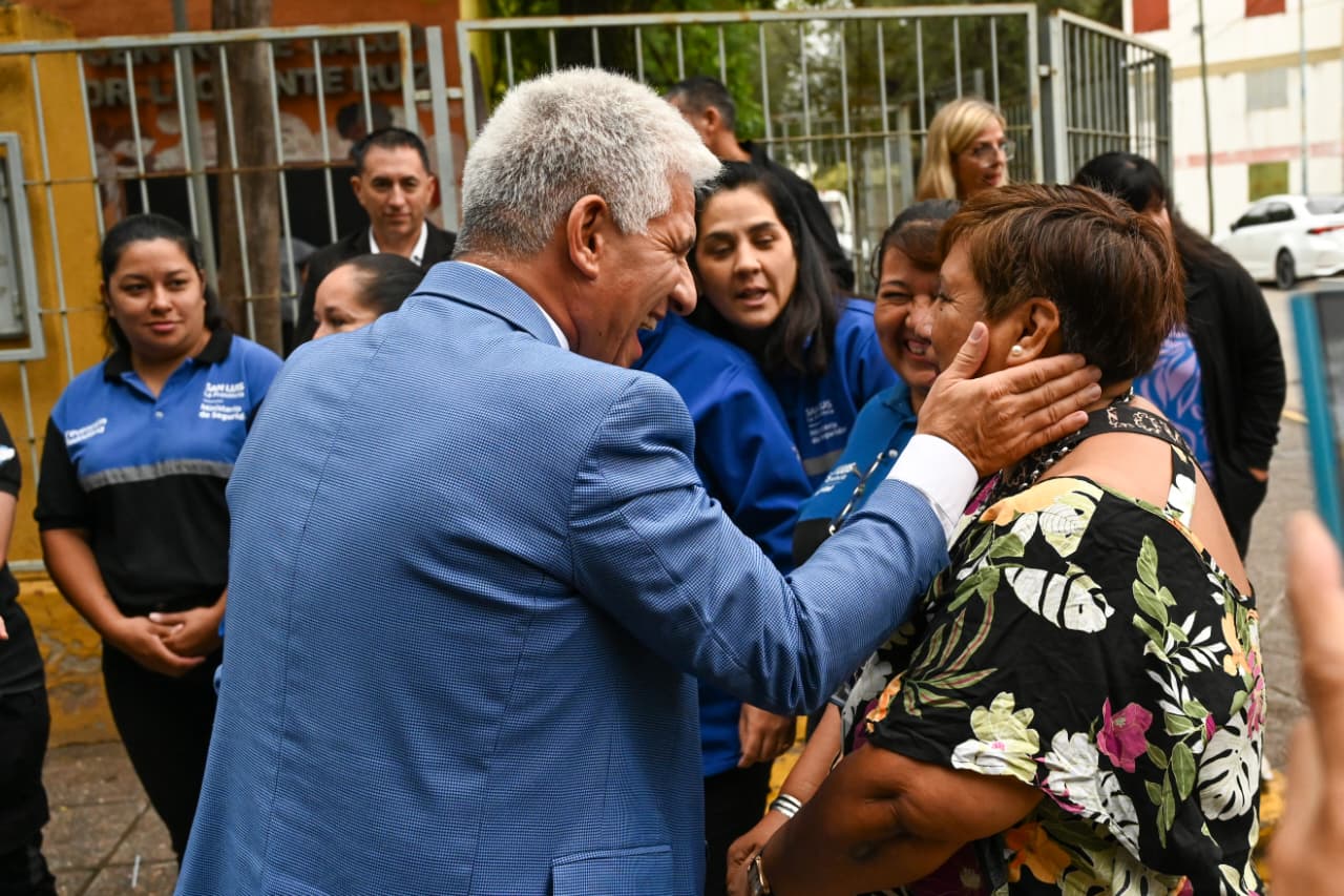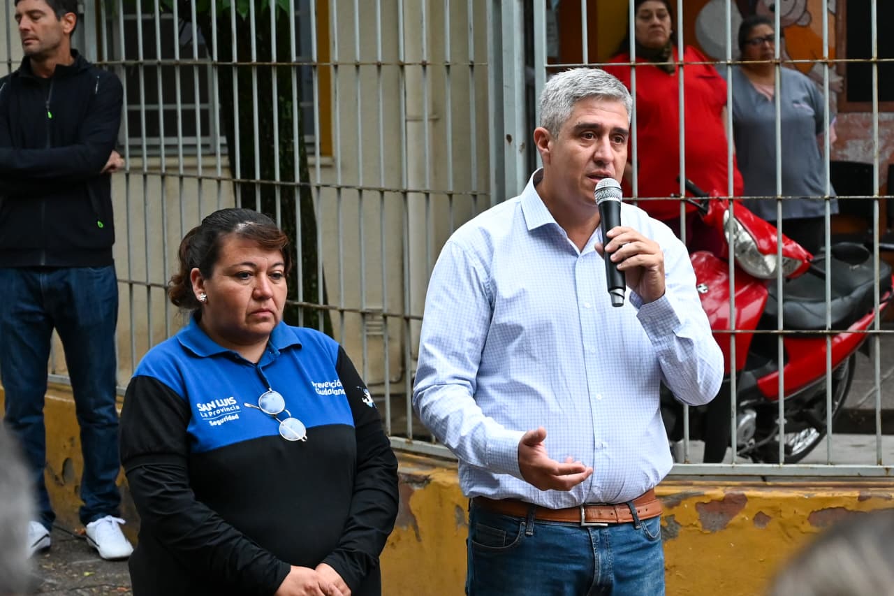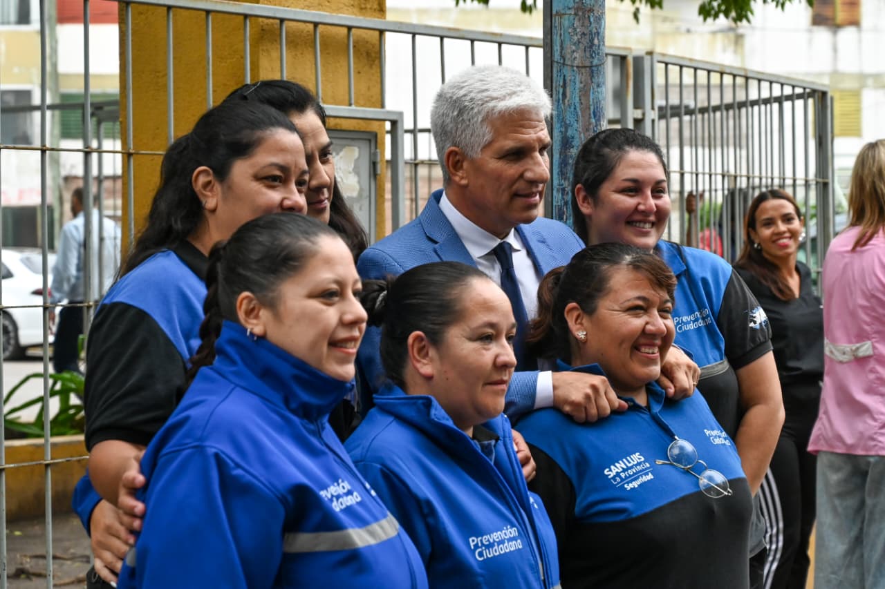 El gobernador Claudio Poggi dio continuidad a su agenda en Villa Mercedes con la puesta en funcionamiento de la Alarma Ciudadana en el barrio 960 Viviendas, en una actividad que se desarrolló sobre la calle Intendente Olloqui y Buenos Aires, a una cuadra de la Comisaría N°10, que inauguró su puesta en valor minutos antes.