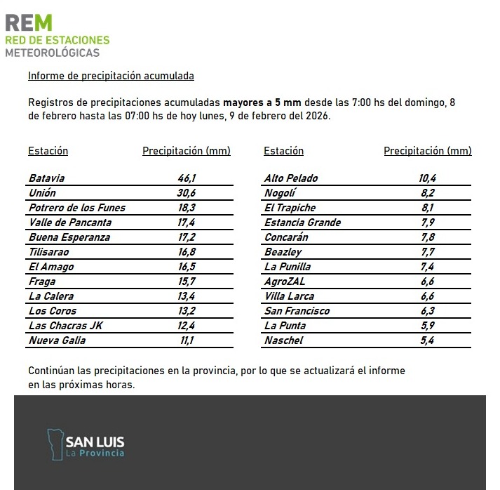 El martes las condiciones serían similares, pero con 32º de máxima. Según el pronóstico extendido, la inestabilidad se mantendría al menos hasta el jueves. Durante la madrugada, varias localidades registraron lluvias, con Batavia en la cima de ranking, que acumuló 46,1 milímetros de agua.