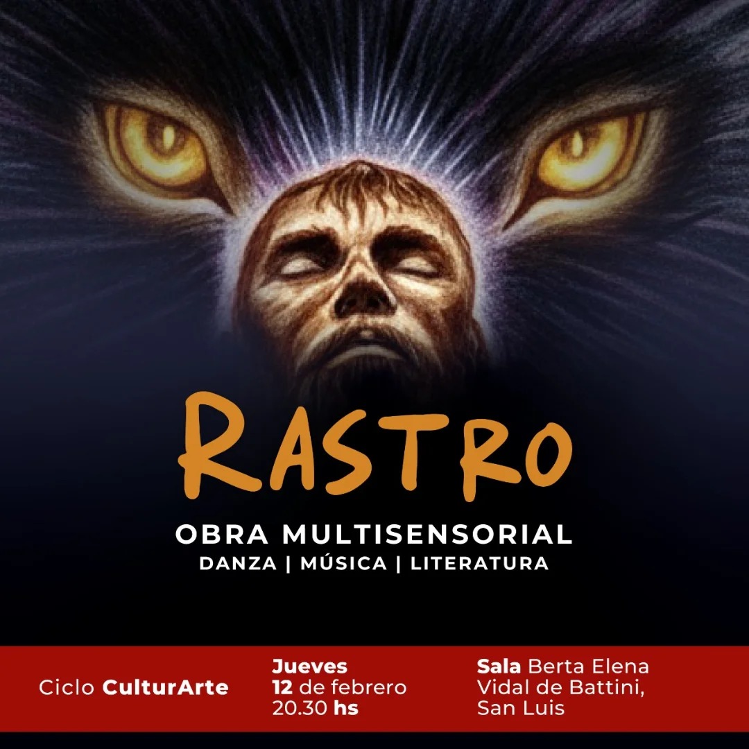 ‘Rastro’ se presentará el jueves 12 de febrero, a las 20:30 horas, en la Sala Berta Vidal de Battini, del Centro Cultural Puente Blanco, en la ciudad de San Luis. Las entradas tienen un valor de $8000 y las reservas pueden realizarse al 2664156041.