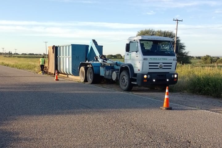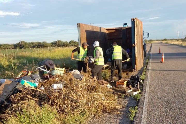 Los trabajadores de Peuma, ubicada en proximidades de La Toma, trabajaron sobre la Ruta Provincial N°2, cercana a la localidad de Juan Llerena, donde se detectaron montículos de residuos que incluían papeles, botellas, escombros y otros.