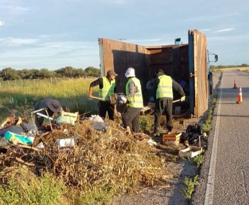 Operarios de la planta recuperadora Peuma y trabajadores municipales de Juan Llerena colaboraron en la limpieza en la vera de rutas próximas a la localidad para evitar la aparición de basurales y microbasurales en rutas provinciales.