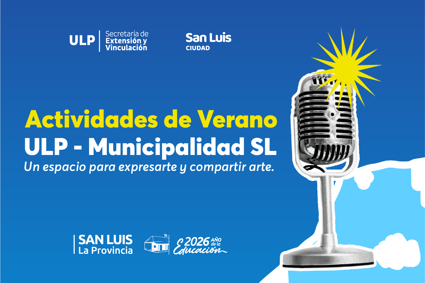 Los artistas que participarán en esta edición de ‘Micrófono Abierto’, la primera de 2026, son: Celina Ledesma Díaz con covers, y Tobías Hess con canciones de autoría propia y covers; El ensamble Junior ULP con un repertorio de covers del rock nacional; el destacado Septeto de Guitarras Cuyanas ULP que interpretará lo mejor del folklore cuyano y la banda Blutú con covers de rock nacional.