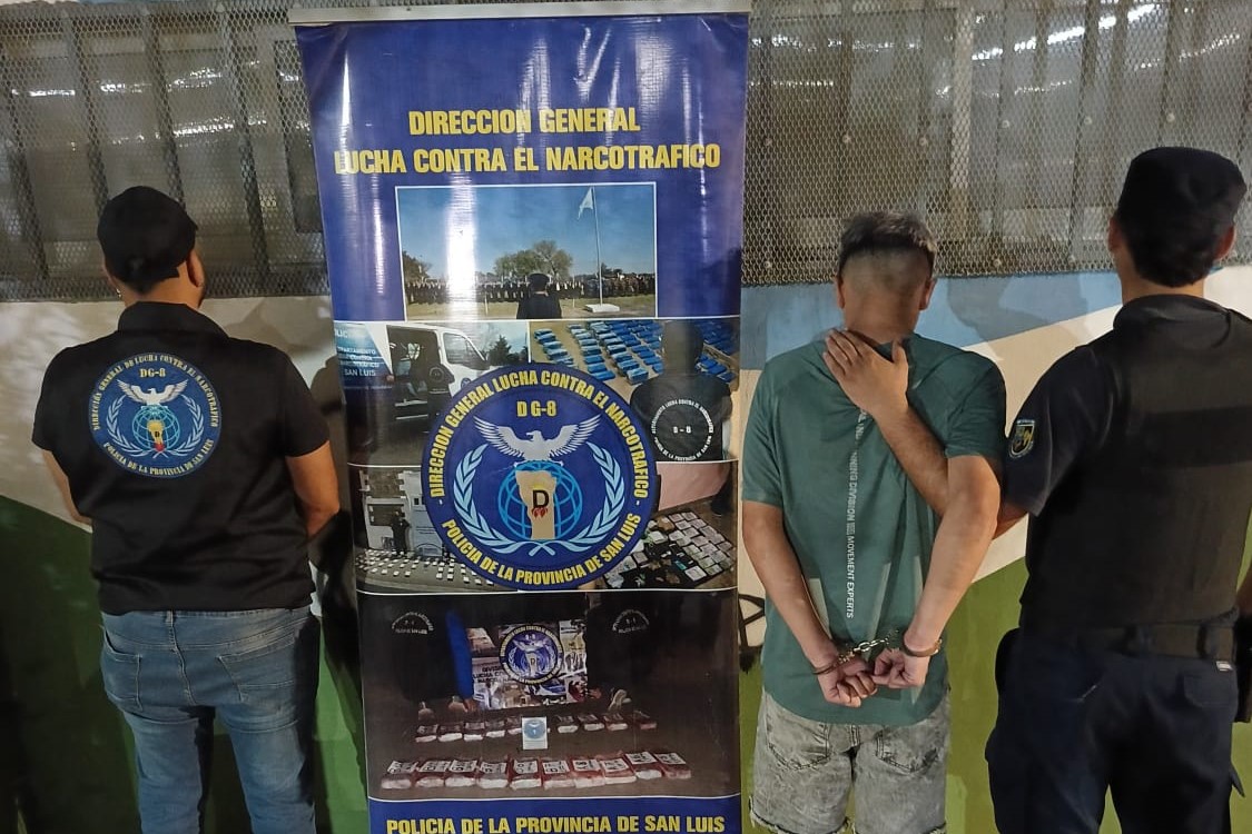 Ese mismo día, con intervención del Juzgado Federal de San Luis, personal de Lucha Contra el Narcotráfico interceptó a otro hombre de 27 años en calle Concarán al 800. En su poder se secuestraron ocho envoltorios de marihuana compactada, valuados en aproximadamente $48.080.000.