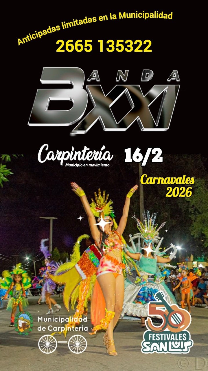 Este lunes 16, el corazón de las Sierras de los Comechingones se llenará de murgas y colores con los Carnavales en Carpintería. Desde la municipalidad, a través de sus redes sociales, informaron que las entradas anticipadas tienen un valor de $8.000, y se pueden adquirir al siguiente número: 2665-135322. La Banda XXI será la encargada del cierre artístico.