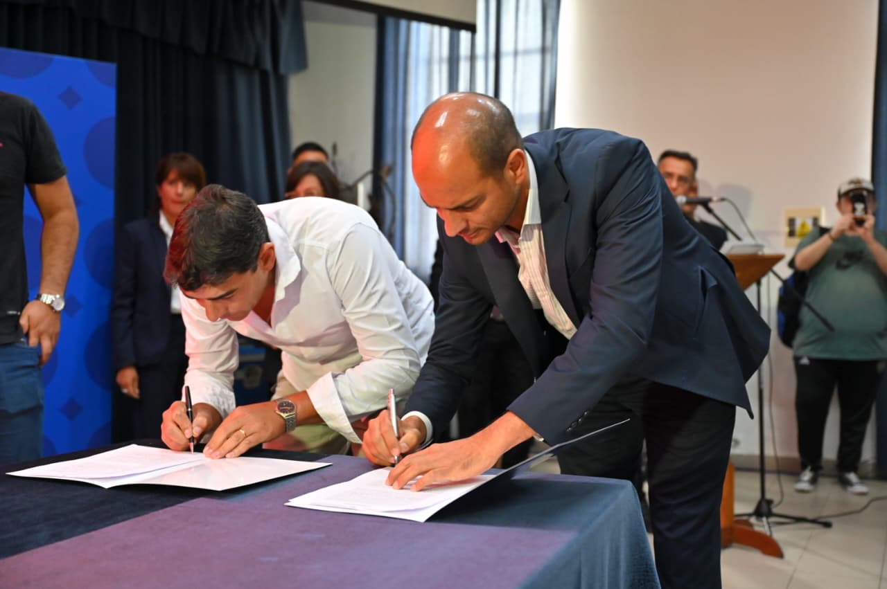 Junto al intendente, en la Municipalidad, el Ejecutivo acordó aportar el 50% de los fondos para que los estudiantes de la ciudad tengan un alivio económico para cursar sus estudios. Beneficiará a más de 17 mil chicos y jóvenes.