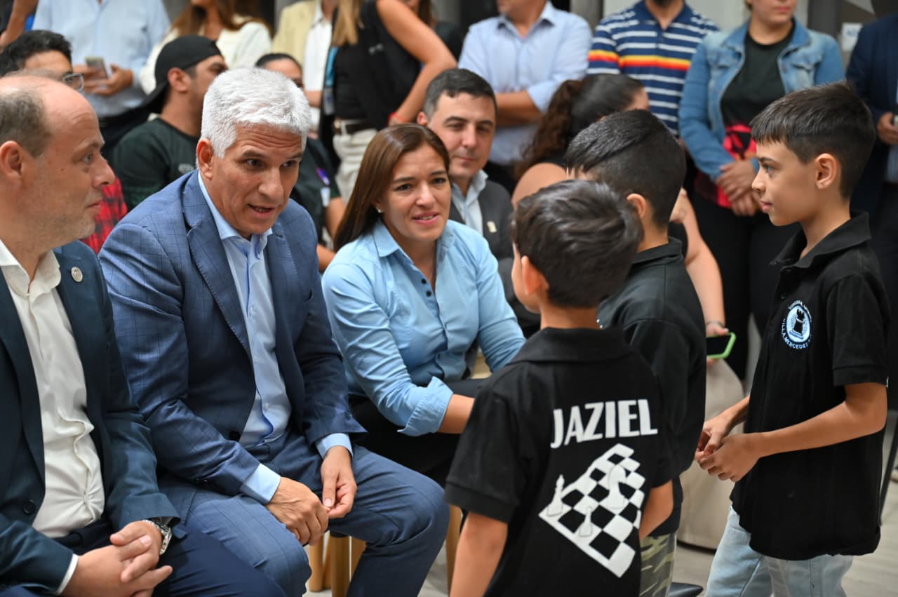 Otra de las instituciones que participó del acto fue el Círculo de Ajedrez de Villa Mercedes, que funciona los lunes, de 19:00 a 20:30 en el Palacio de los Deportes, asociación nació de un grupo de padres de niños jugadores. “Recibimos el segundo aporte de otro millón de pesos y compramos material como tableros, relojes y las piezas para poder jugar. Con esto vamos a completar para organizar torneos y no depender de nadie”, contó una integrante.