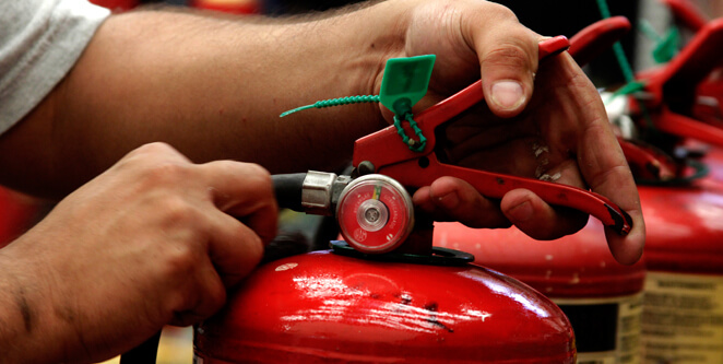 El Ejecutivo lleva adelante la revisión y puesta a punto de los extintores junto a una empresa especializada.
