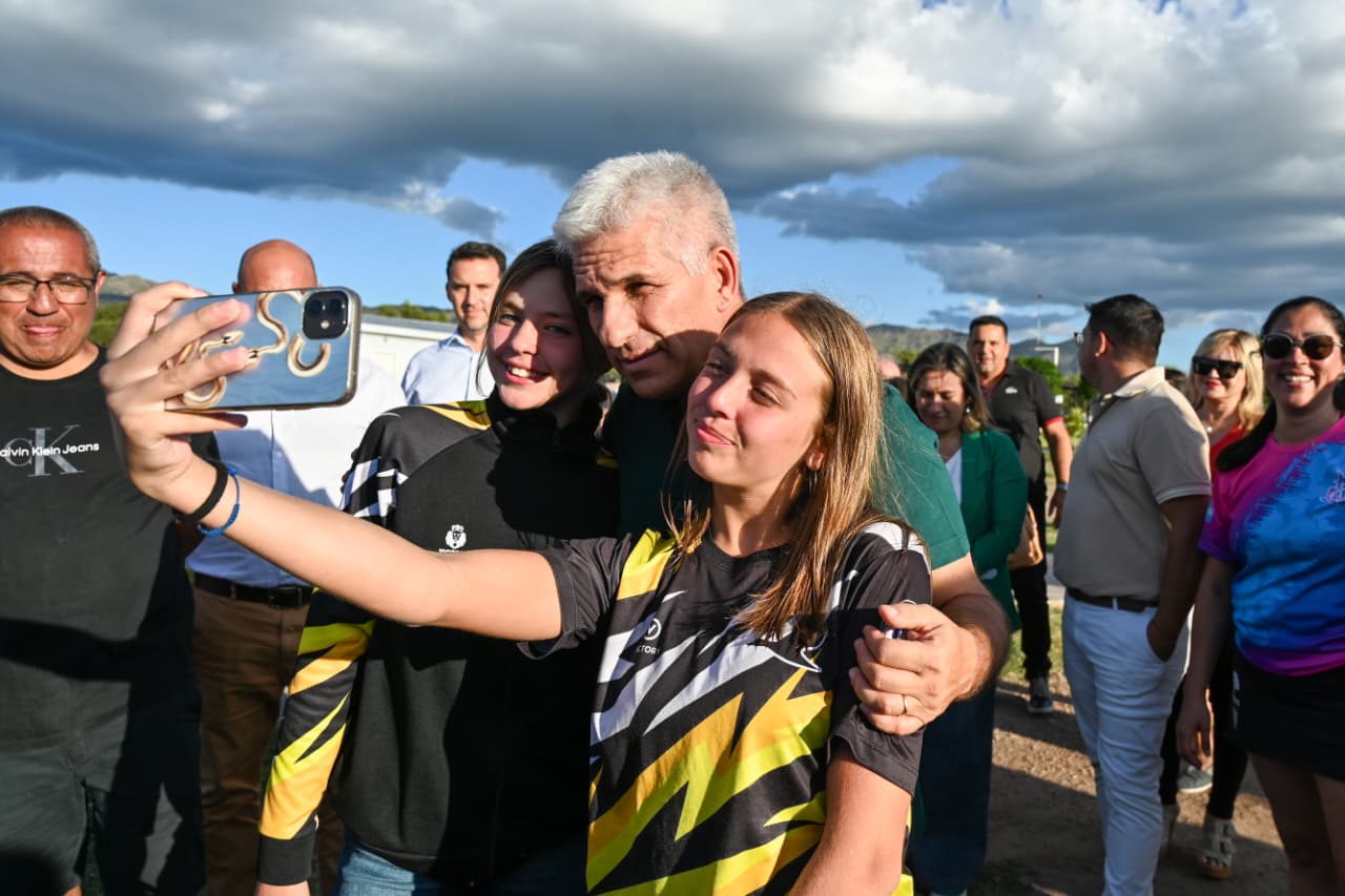 Tras el acto, el Primer Mandatario presenció el partido inaugural entre los equipos Anashei y Ancestral, ambos de Mendoza, y aprovechó para conversar con algunos jugadores de Los Patos, el otro equipo que representa a San Luis.