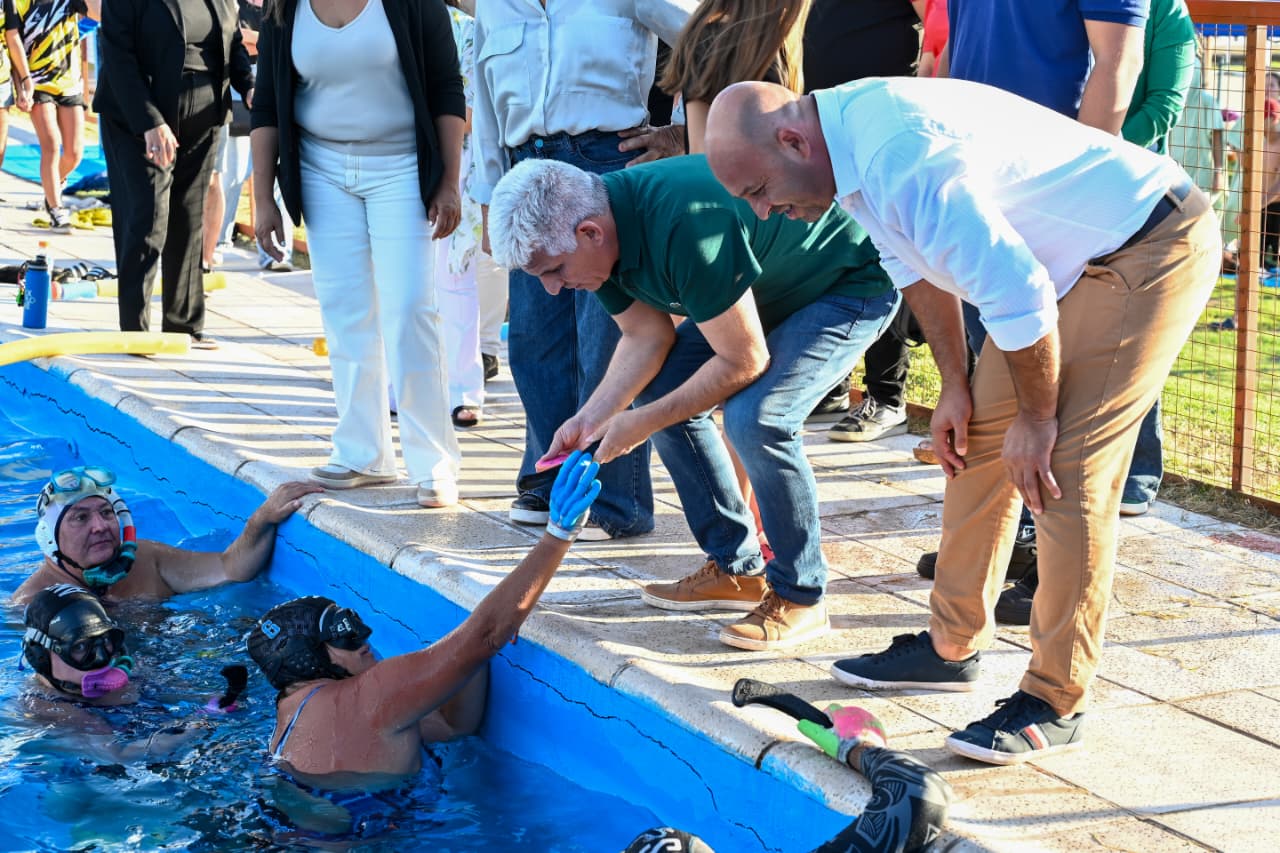 Poggi participó de la apertura de un torneo nacional de hockey subacuático en La Punta