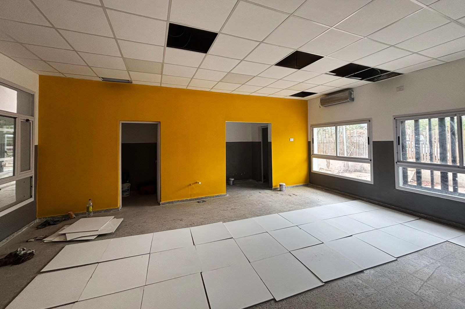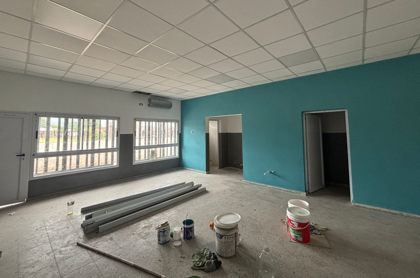 Los trabajos avanzan con la instalación de aberturas, colocación de rejas y tareas de pintura. El establecimiento contará con una superficie cubierta de 604 metros cuadrados y 57 metros cuadrados semicubiertos.
