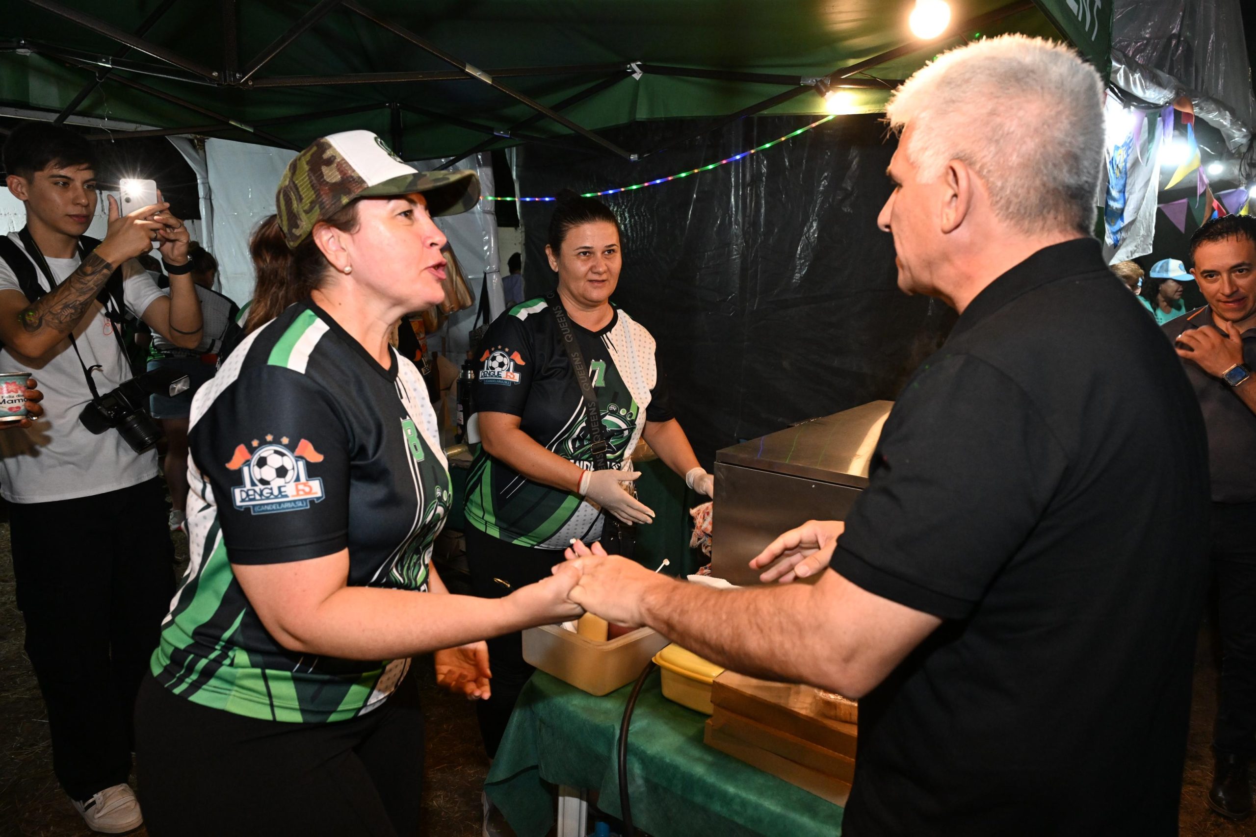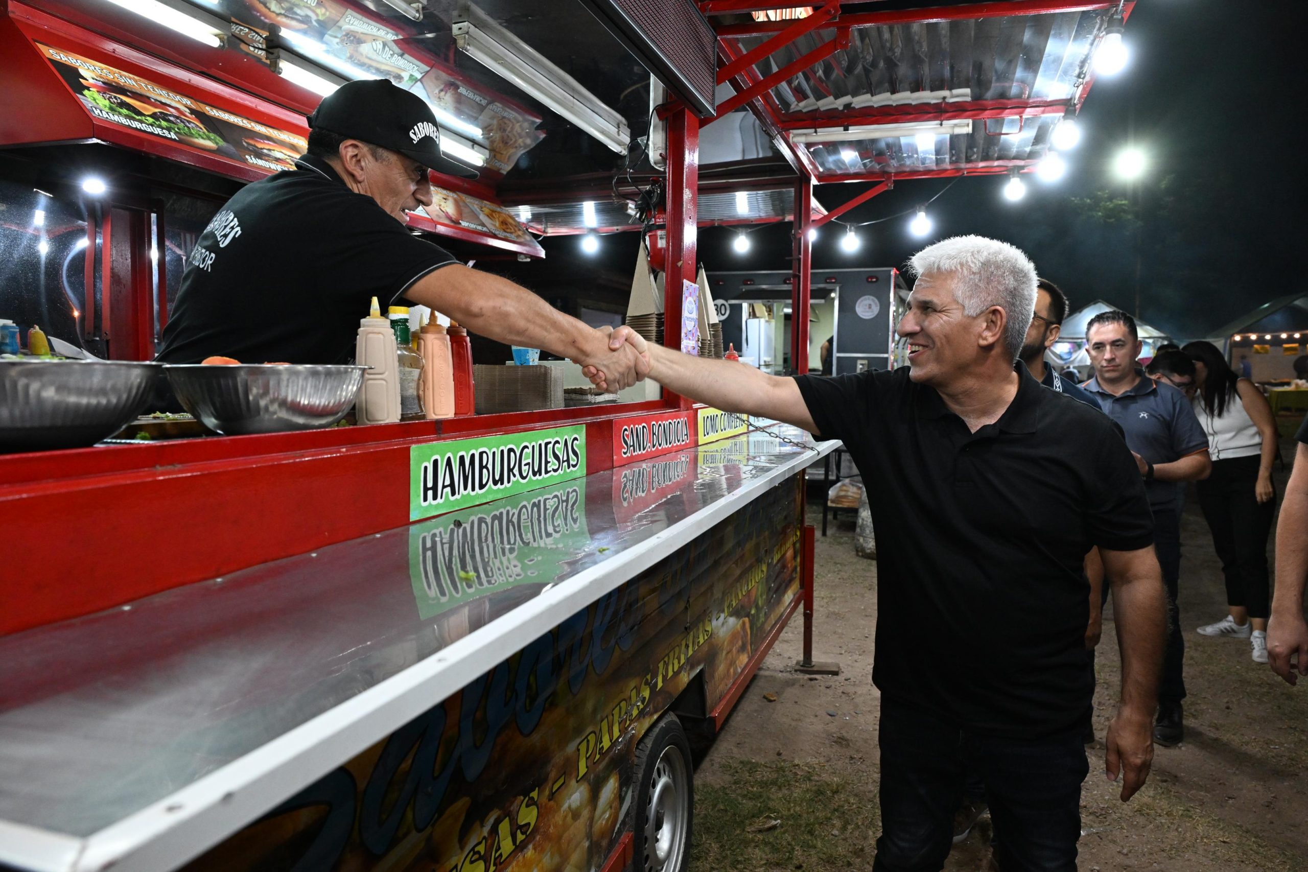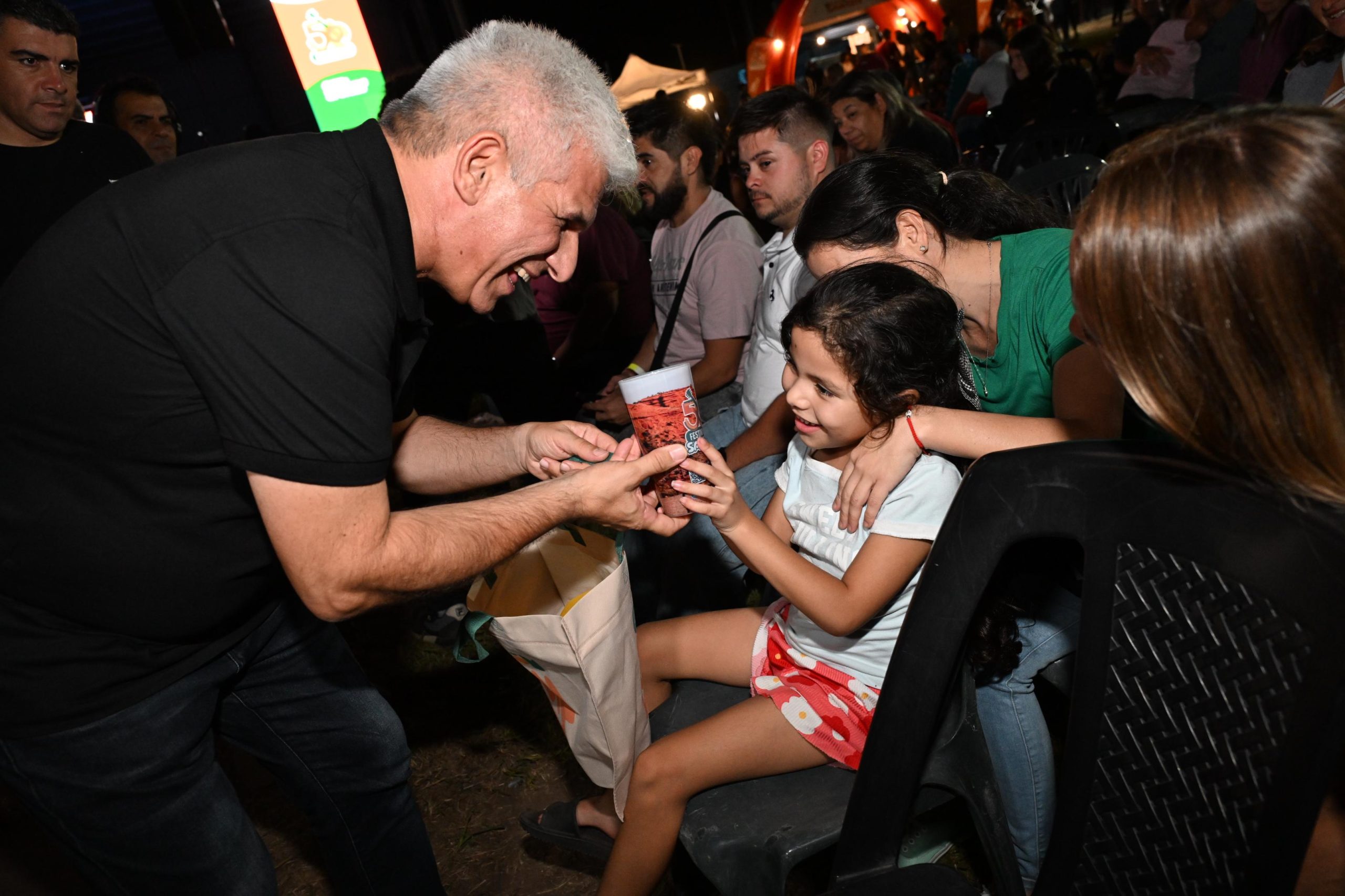 El Mandatario arribó al predio municipal alrededor de las 23:00 e inmediatamente inició una recorrida por los distintos puestos gastronómicos, dialogando con los emprendedores que se acercaron e interiorizandose sobre sus proyectos. En cada paso también aprovechó para saludar a vecinos y turistas, accediendo a fotos para atesorar el momento singular.