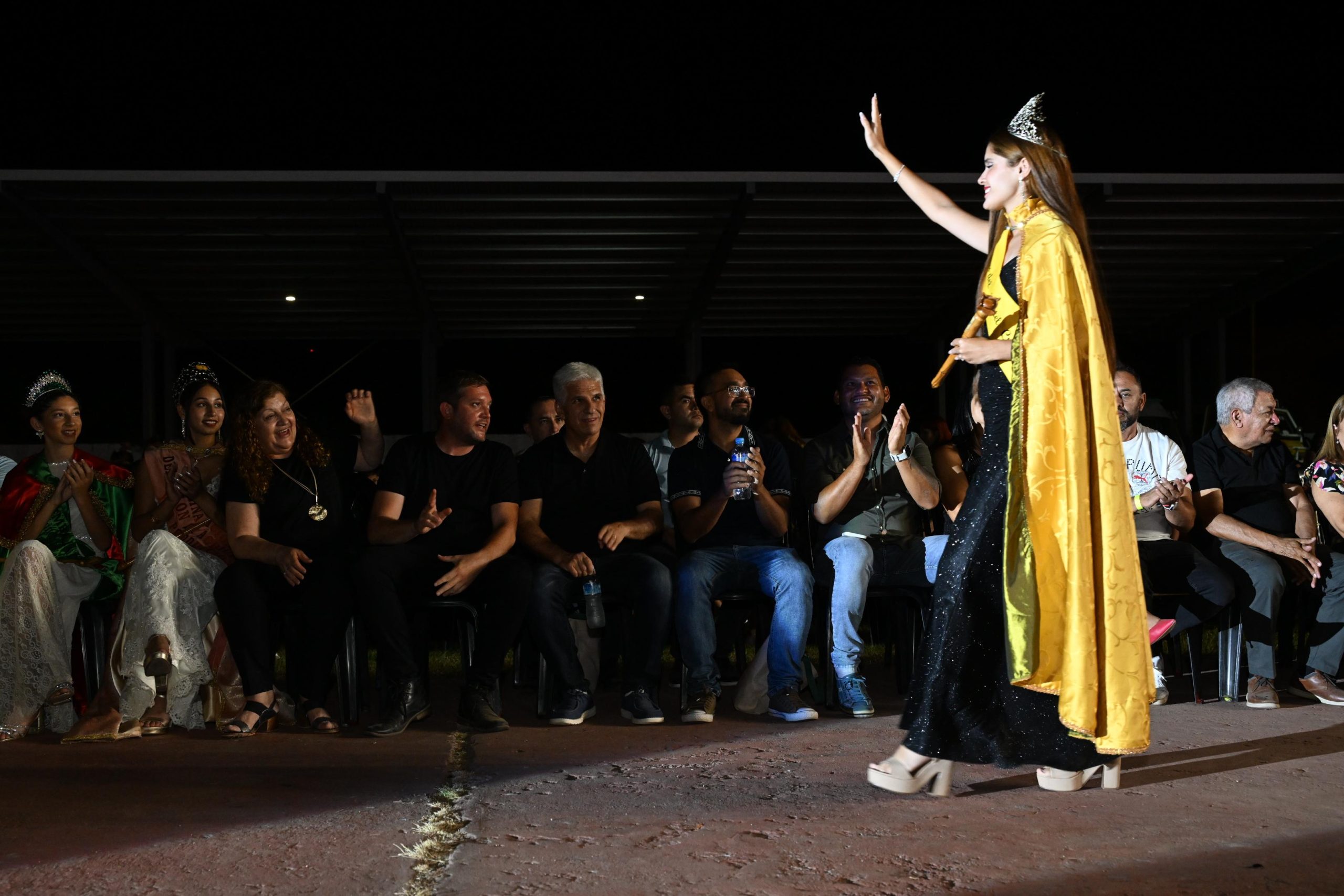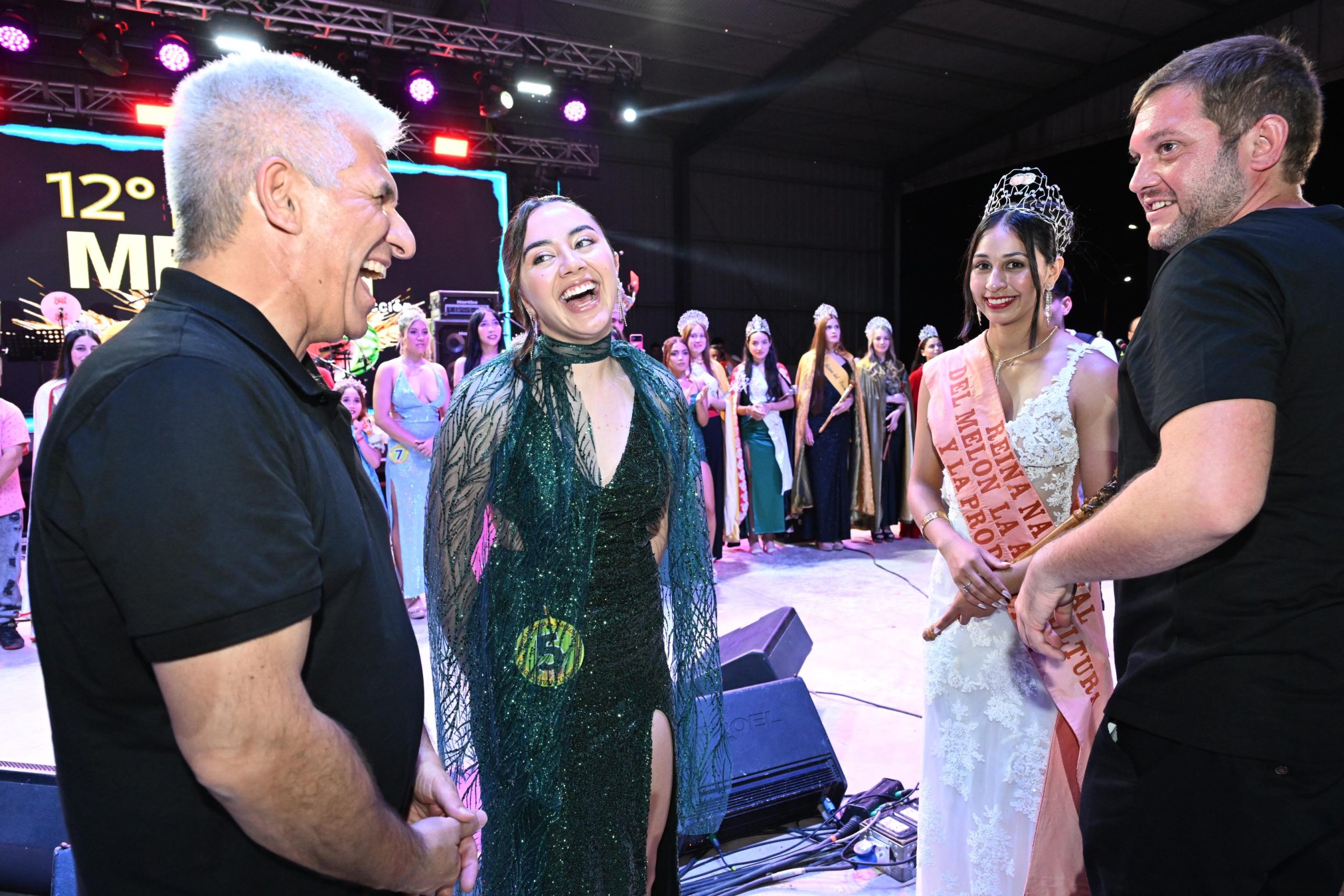 Tras la entrega del presente, comenzó el desfile de las reinas invitadas de otros festivales y luego la presentación de las siete candidatas a reina de la fiesta de Candelaria 2026. La soberana electa por el jurado fue Nicole Díaz, acompañada por Evangelina Montivero como primera princesa y Candelaria Mansilla como segunda princesa. Entre un show de fuegos artificiales, el Gobernador felicitó a la flamante reina, una joven nativa del pueblo de apenas 19 años, y le hizo entrega de la banda correspondiente.