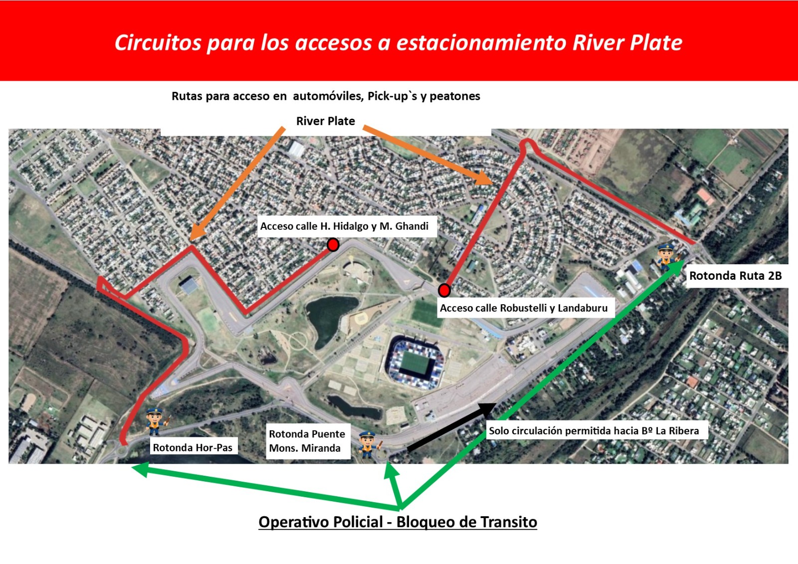 Las tareas iniciarán desde la madrugada del martes en los puestos limítrofes y rutas de la provincia. Una vez que ingresen a San Luis y previo al partido, los colectivos que transporten a la hinchada de River Plate ocuparán el sector de Los Espejos de Agua, predio de ‘El Lago’, mientras que los colectivos que transporten a la parcialidad de Ciudad Bolívar serán recibidos en el Club Pringles de Justo Daract.